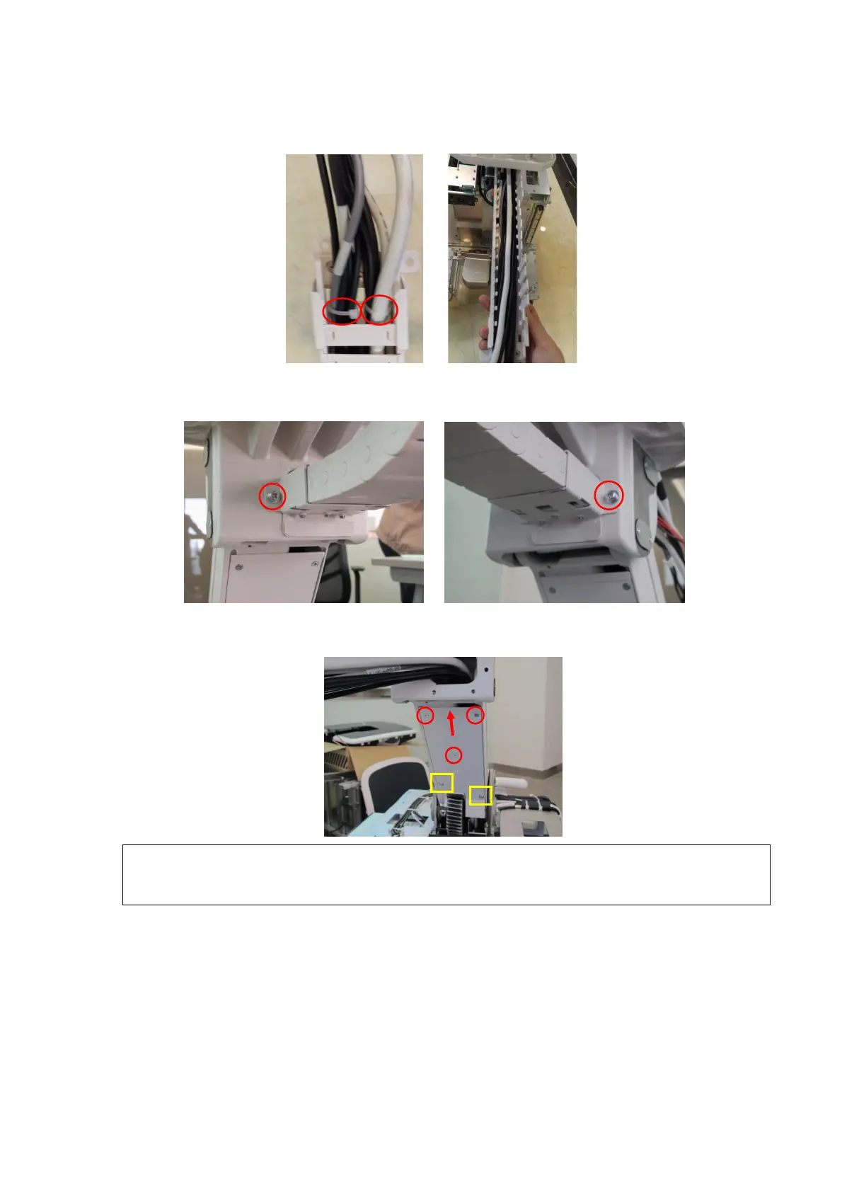 e) Take the cables out of the hole from the lower stand column, and then take the cables out of