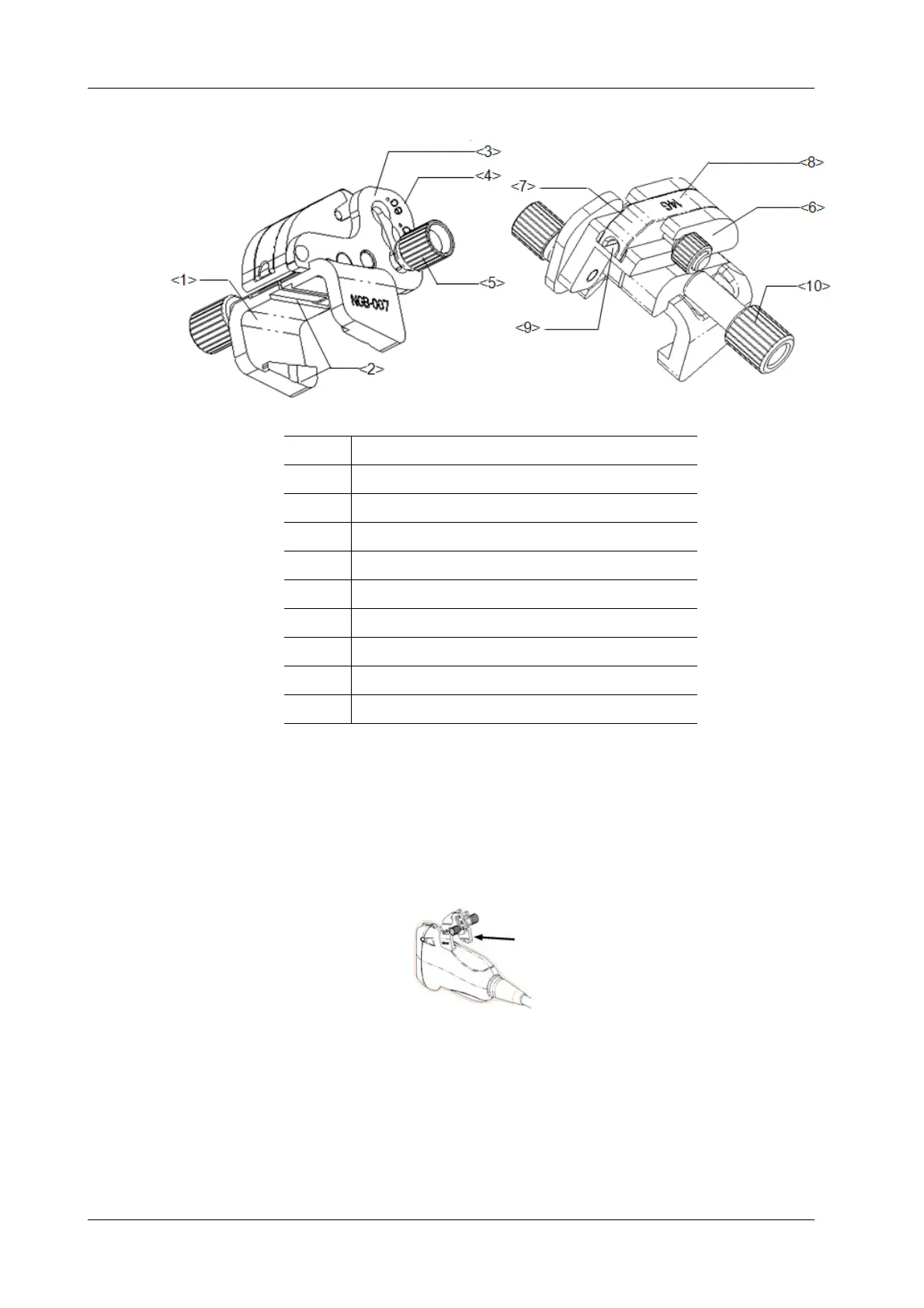 b. Hold the probe in one hand, select the correct needle-guided bracket and hold it with the