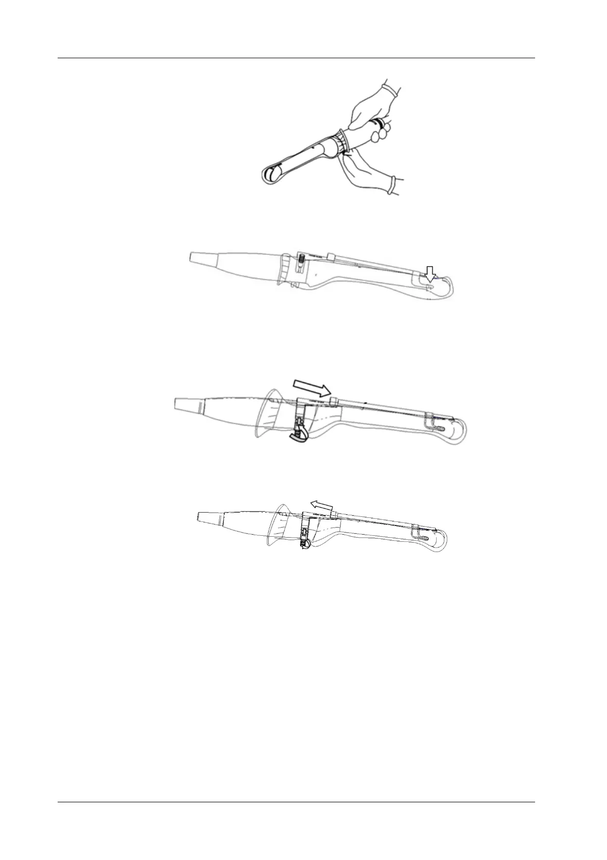 c. Push the biopsy forward (arrow’s direction) until the locating pole inserting into the