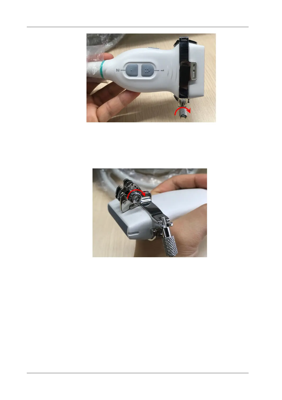 c. Mount the bracket onto the probe, and rotate the locking nut to fix the bracket.