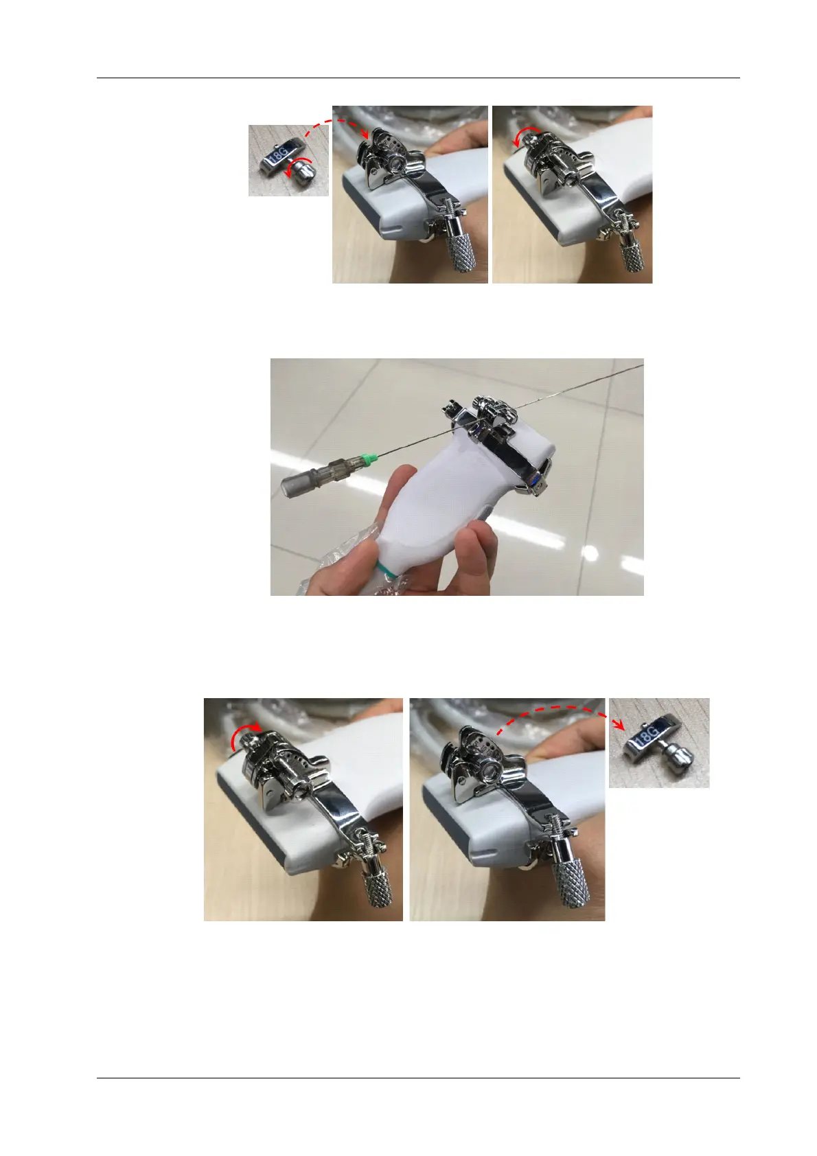 c. Rotate the clamping nuts of the needle guided-bracket. The needle guided-bracket is