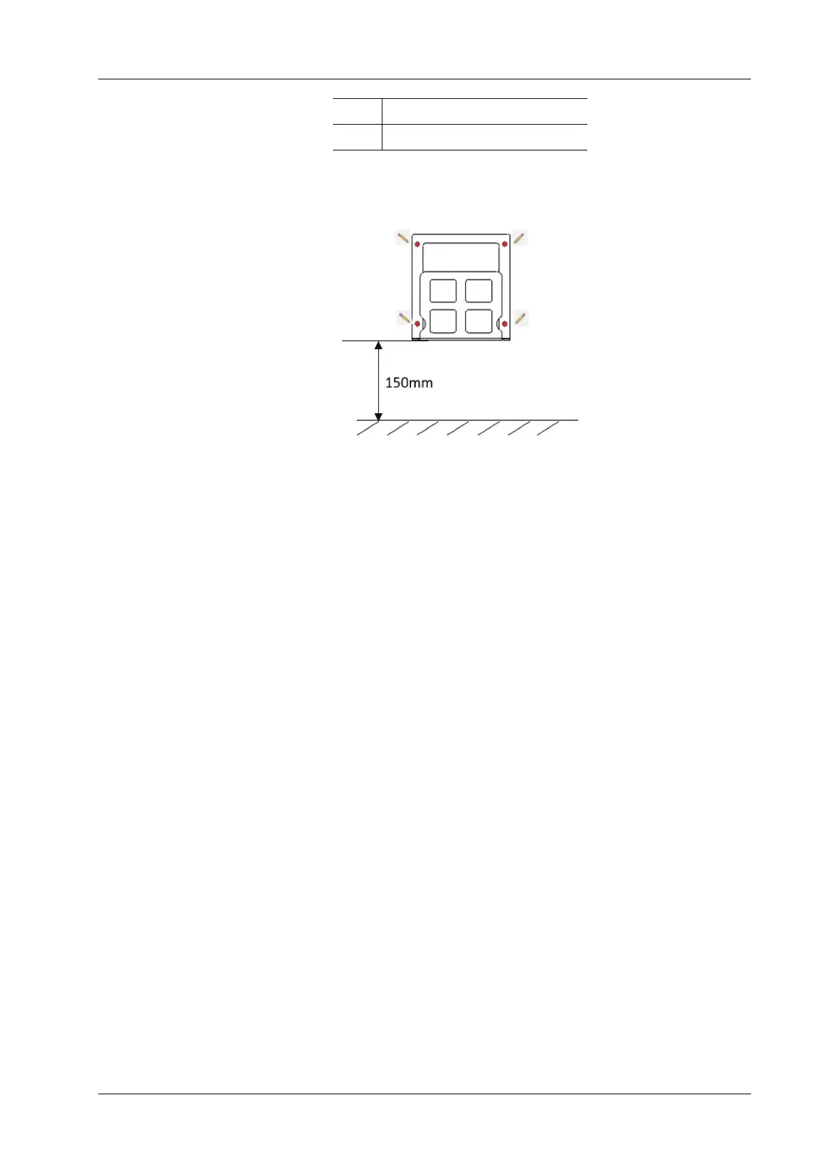 2. Install the pad 120 ~150 mm above the ground and make marks on the wall at positions