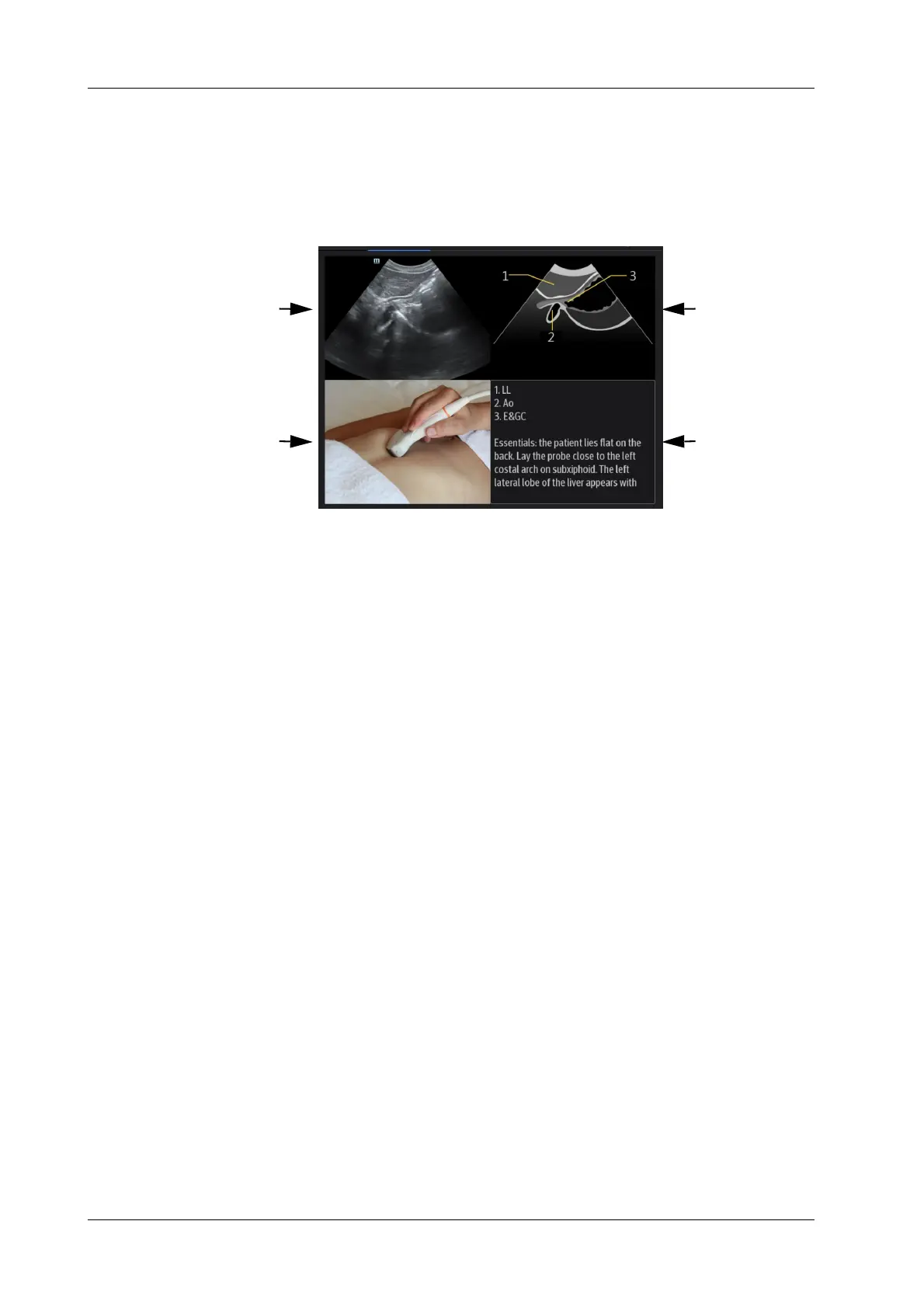 Ultrasonic image, anatomic graphic, scanning picture and scanning tips are provided in the