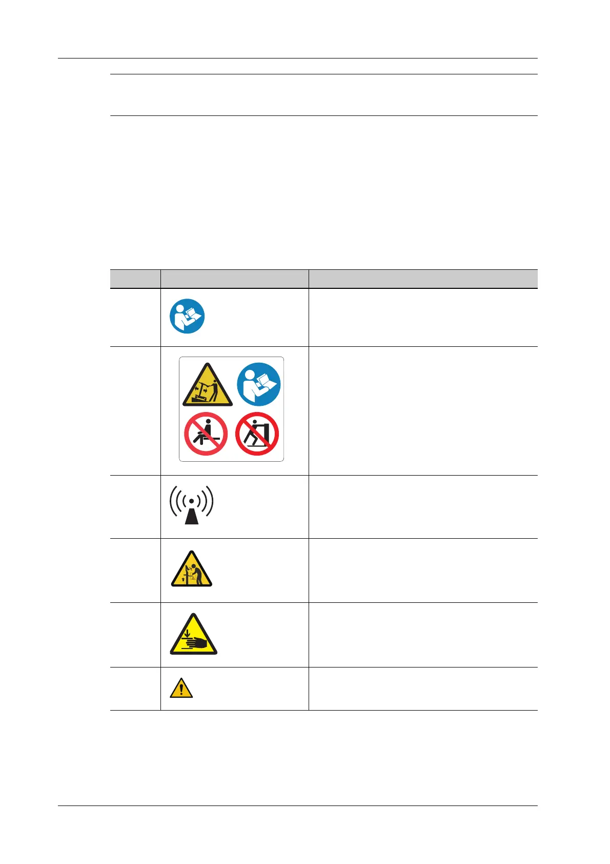 This system uses the symbols and warning labels listed in the following table to describe the