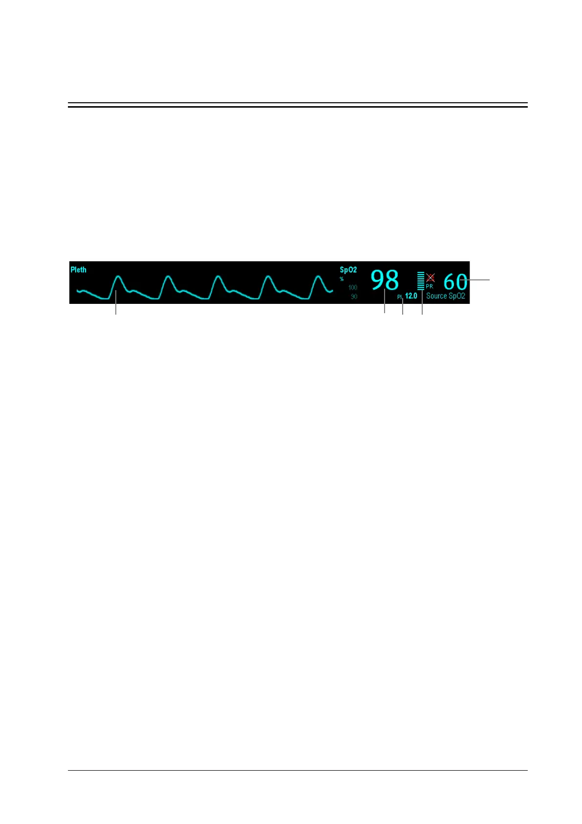 1. Pleth waveform (Pleth): visual indication of patient’s pulse. The waveform is not normalized.
