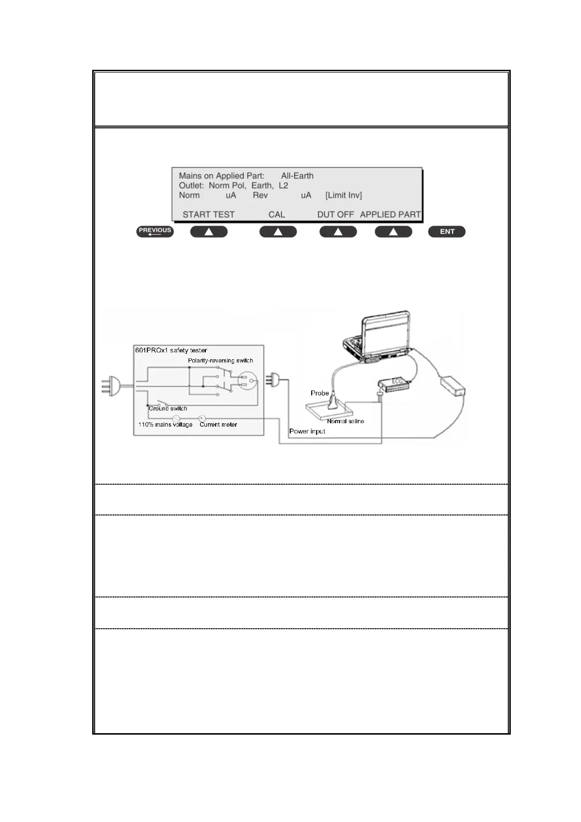 3) Press shortcut key 7. The Mains on Applied Part test is displayed.