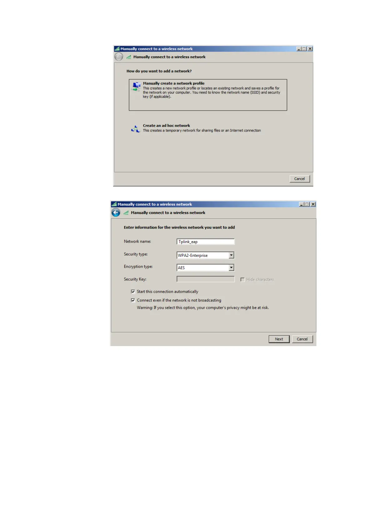 Select “Start this connection automatically” and “Connect even if the network is not
