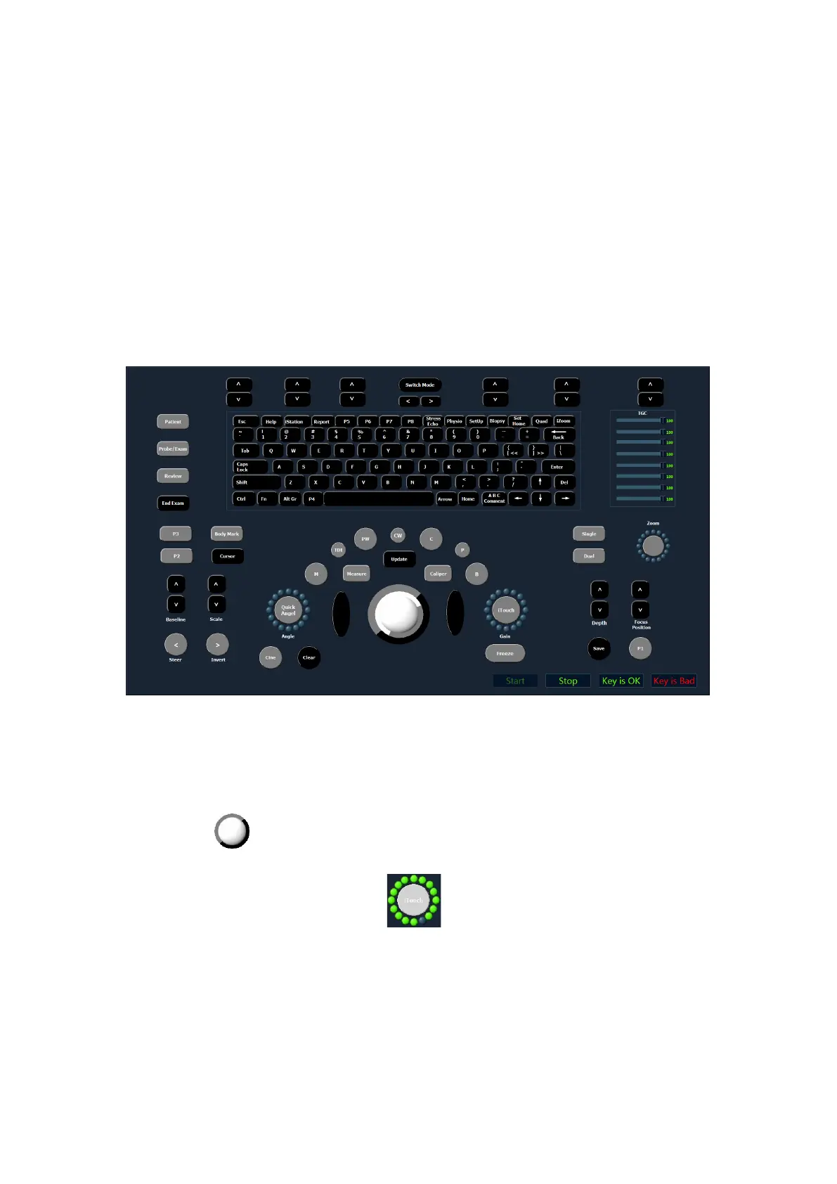 As shown in the figure above, click [Start] to perform the keyboard test. The controls