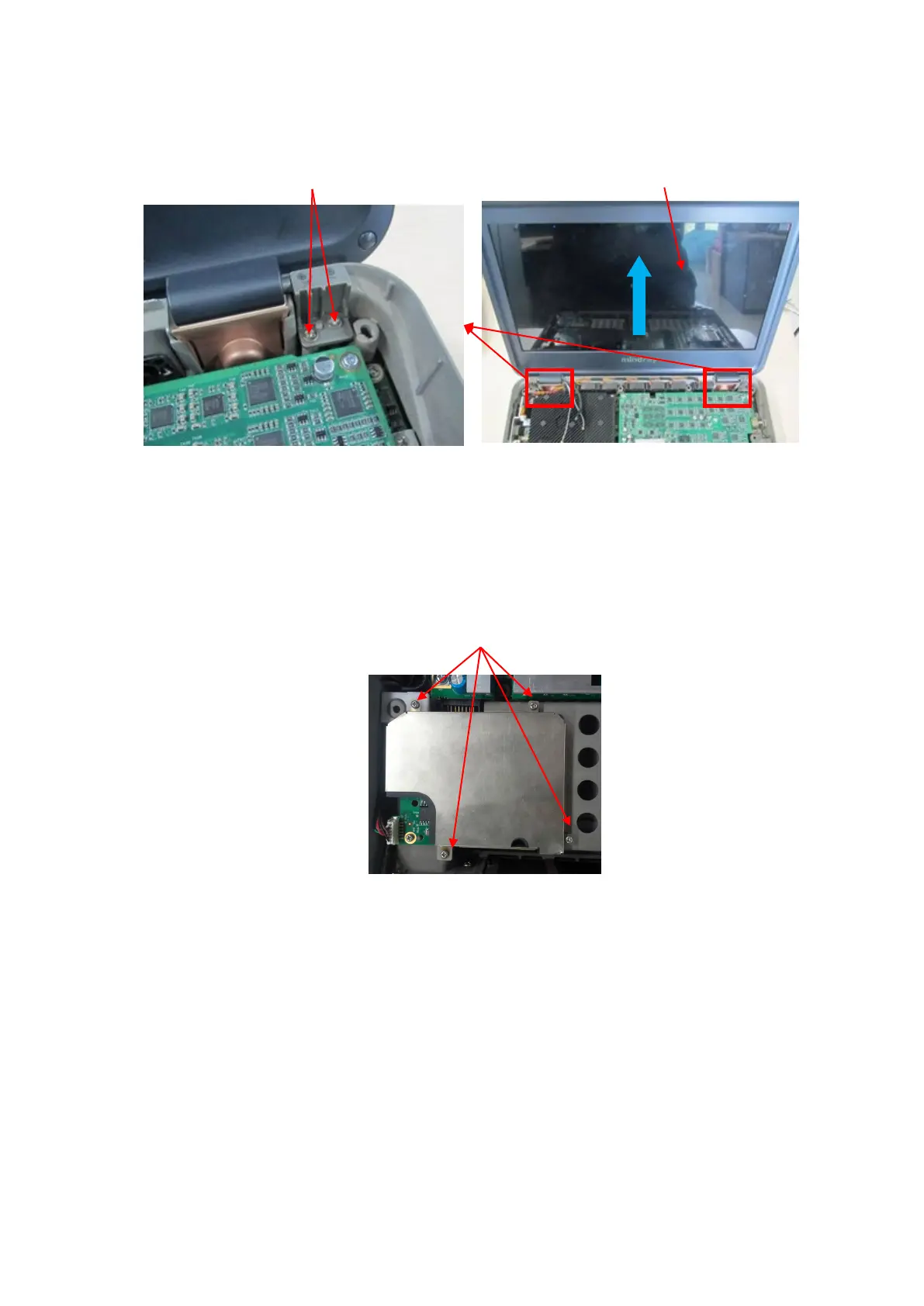 3. Remove the ECG cable pressure plate, and remove 4 screws on ECG board ((M2 X 4 stainless