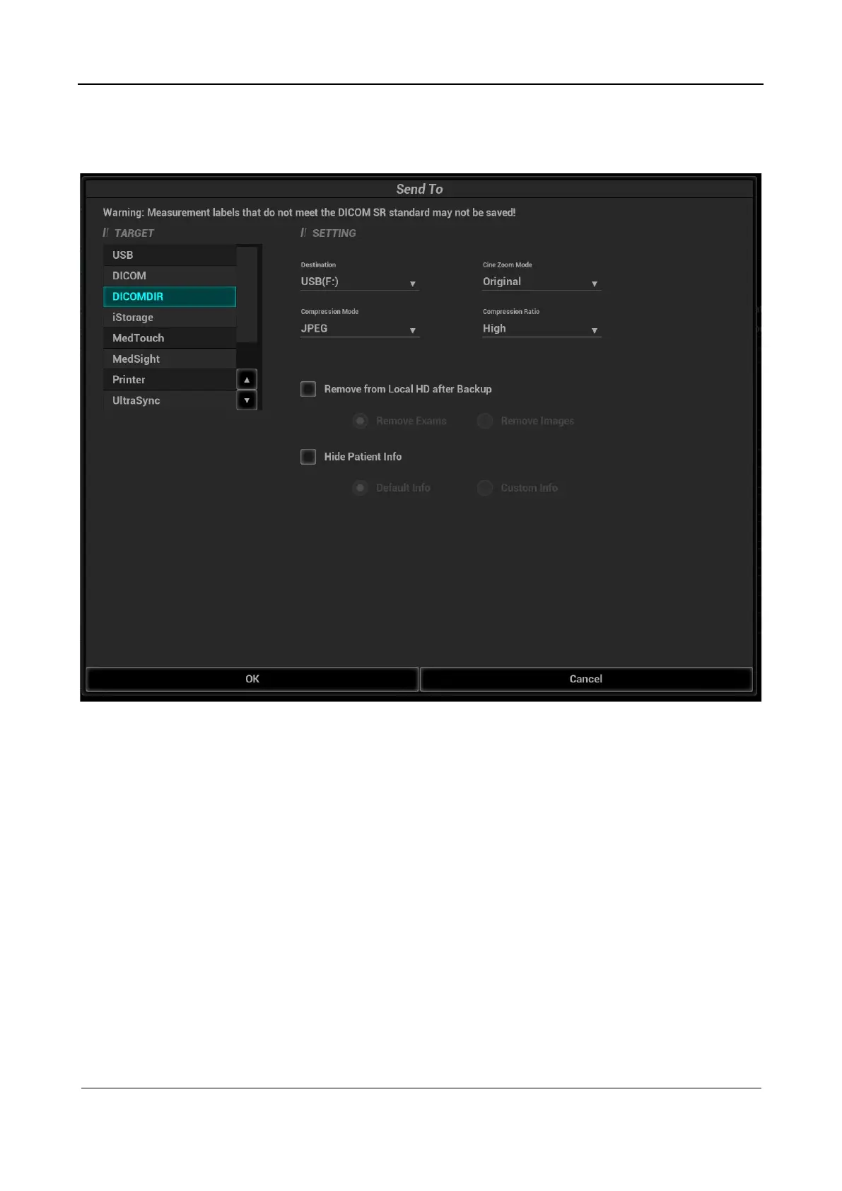 Select the patient record, click Send Exam in the menu to send exam data or images of the selected