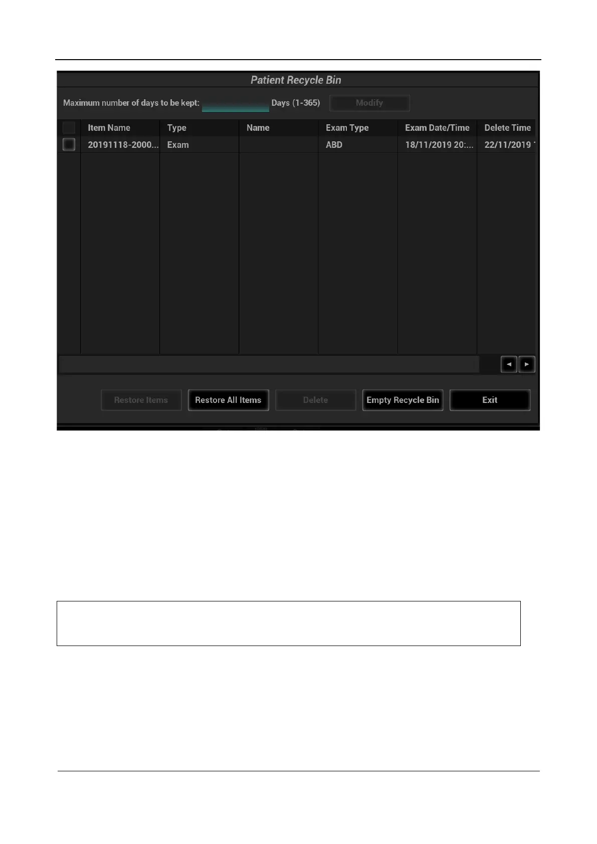 ˗ Click Exit to exit the Patient Recycle Bin screen.