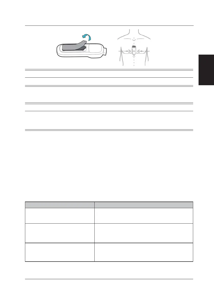 Nie wolno umieszczać czujnika RKO na otwartych ranach lub w miejscu niedawnego nacięcia.