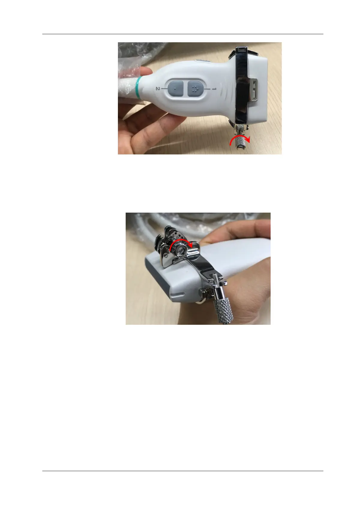 c. Mount the bracket onto the probe, and rotate the locking nut to fix the bracket.