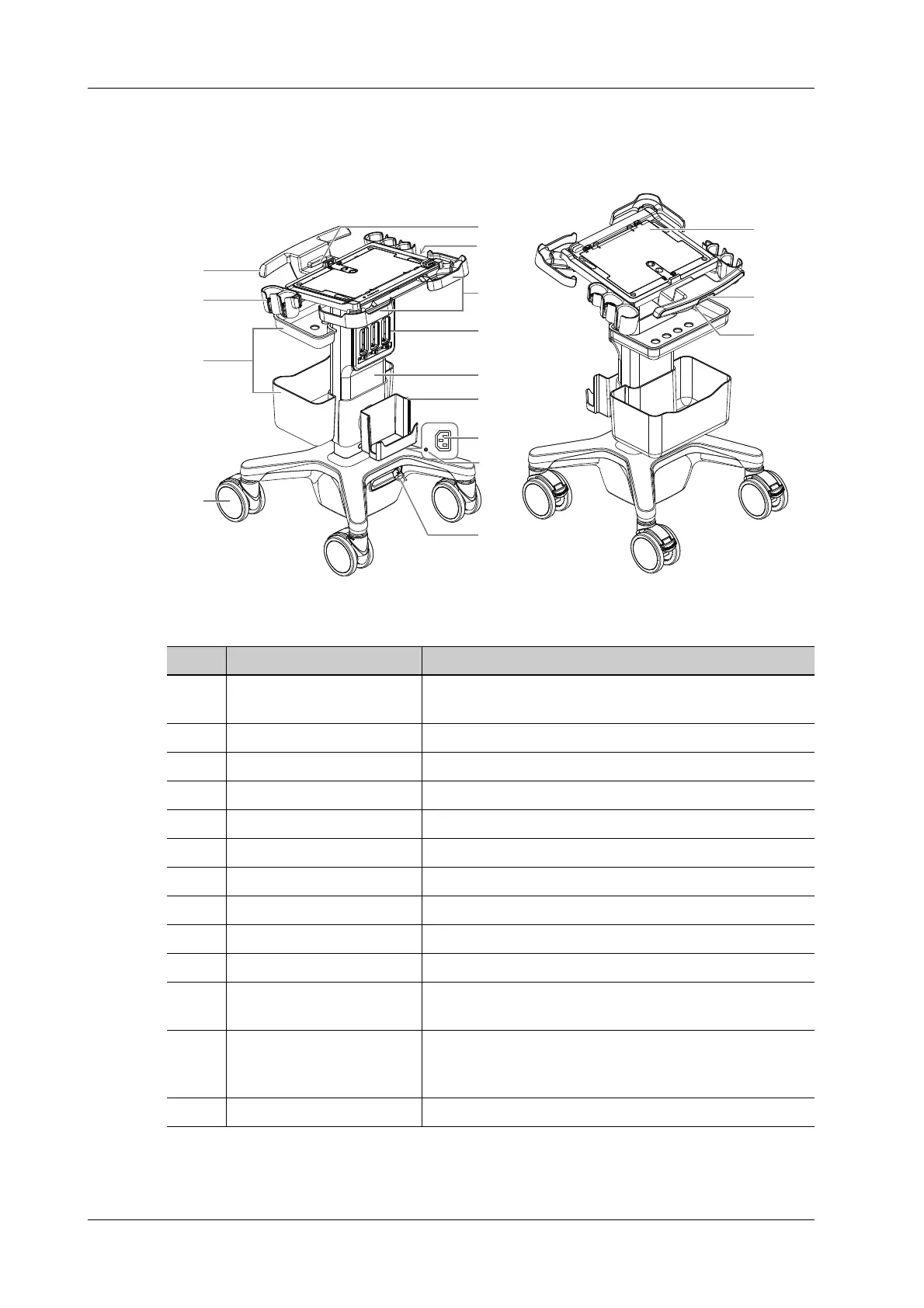 1. Trolley handle Used for ascending/descending the trolley or moving the