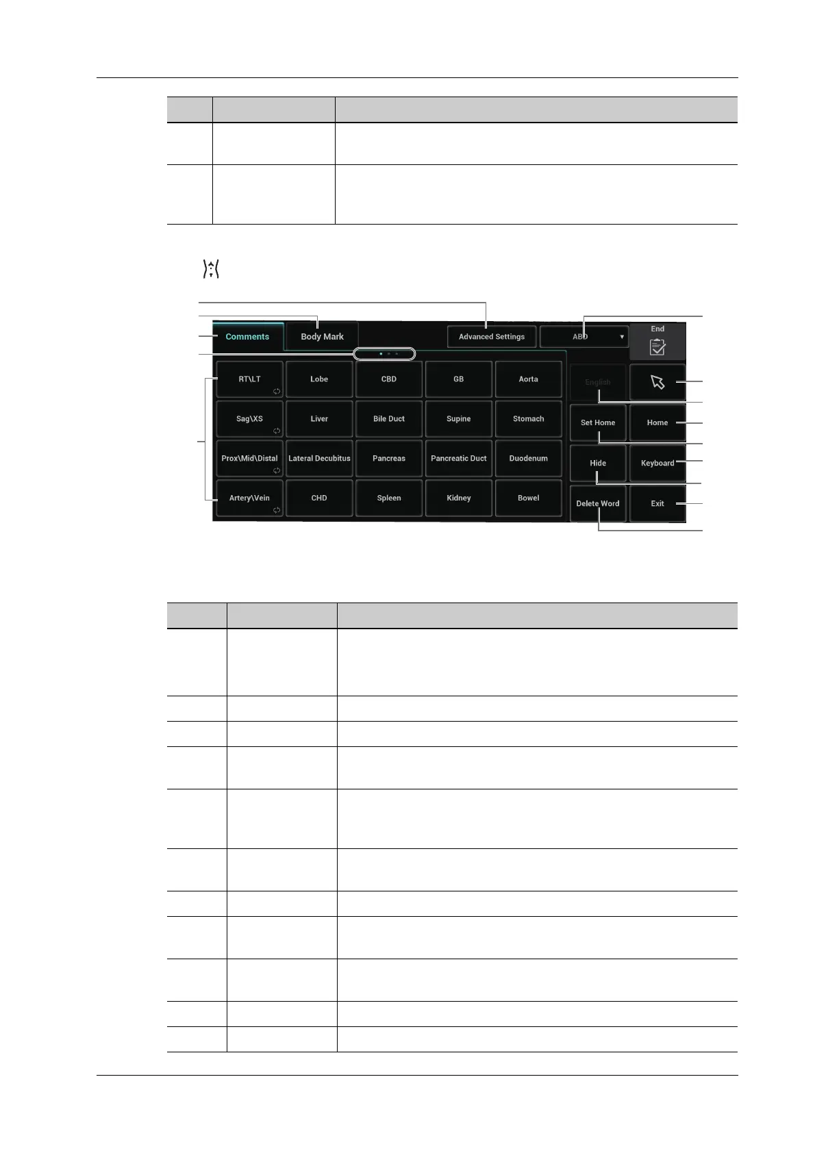 Press (Body Mark)/<ABC> button to enter bodymark/comment status.