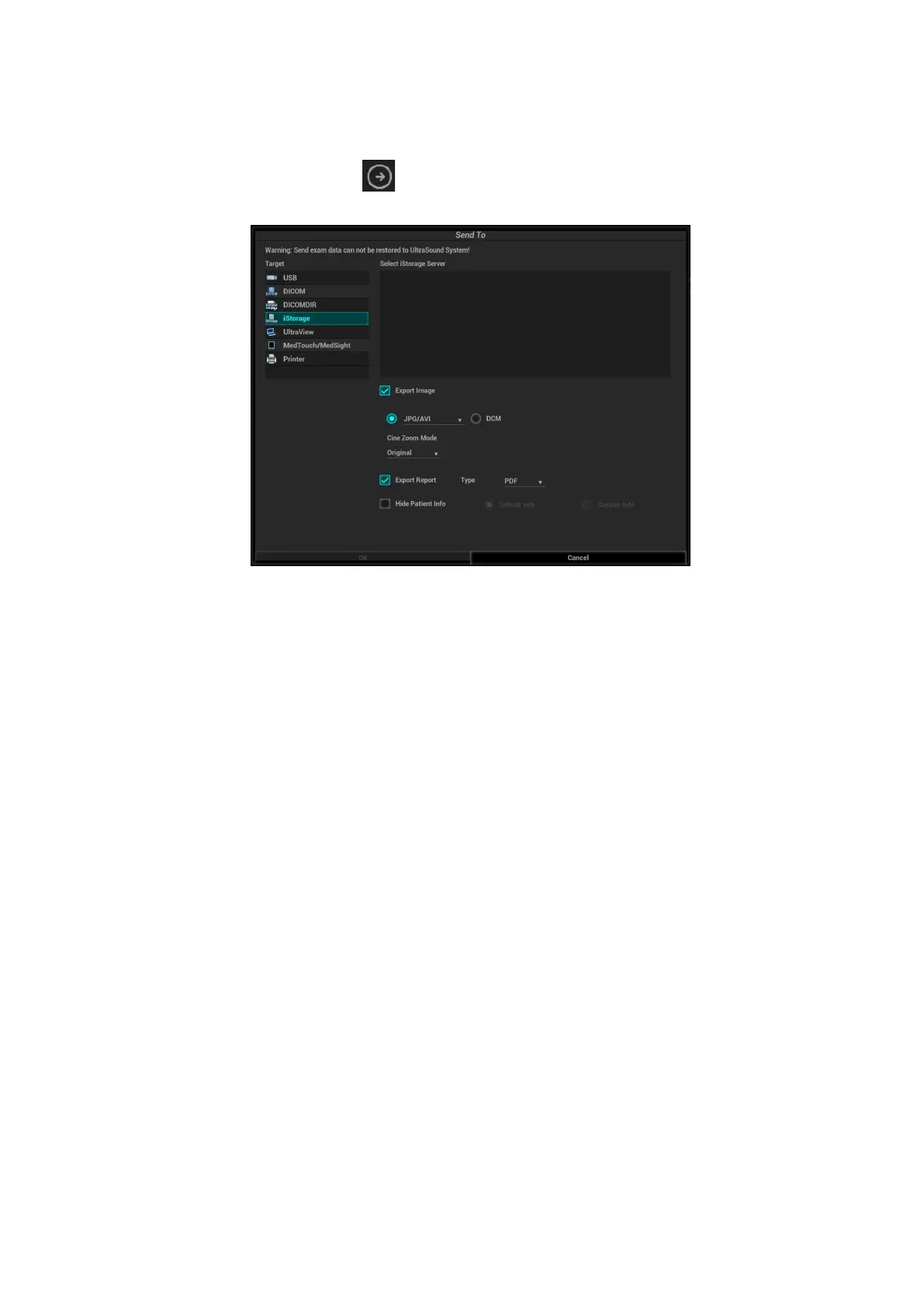 2. Select “iStorage” to export the image in DCM format. See the figure below: