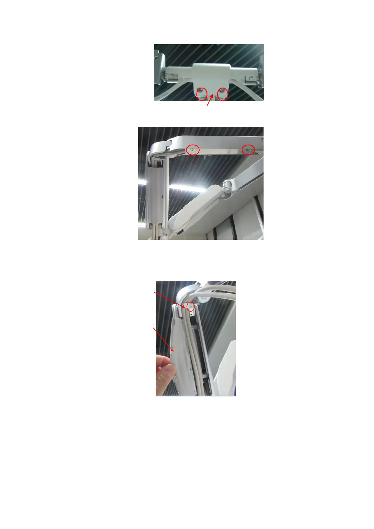 support arm along the direction shown in the left figure, and remove the cable protection cover