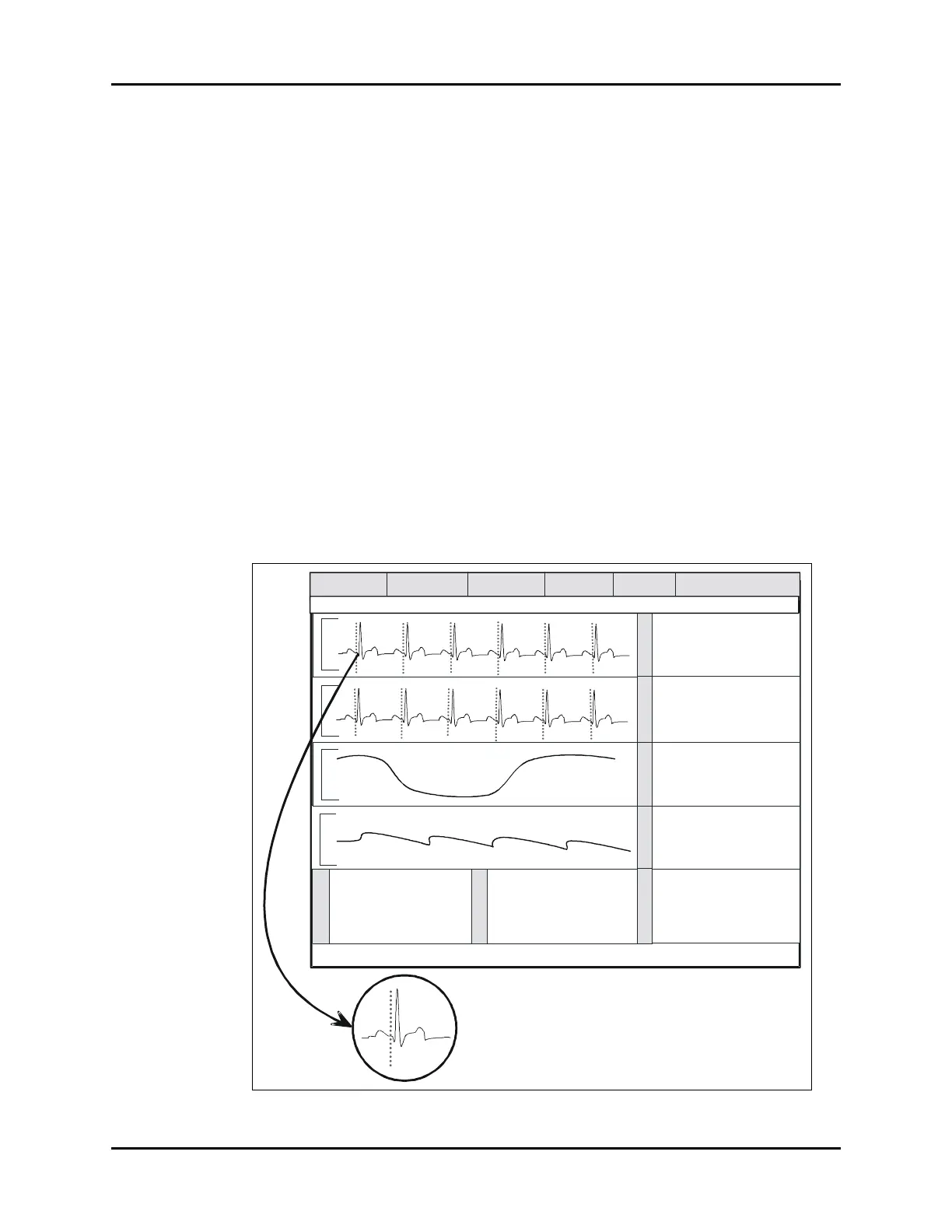 There should be five (5) complete ECG cycles. The same display and timing should be