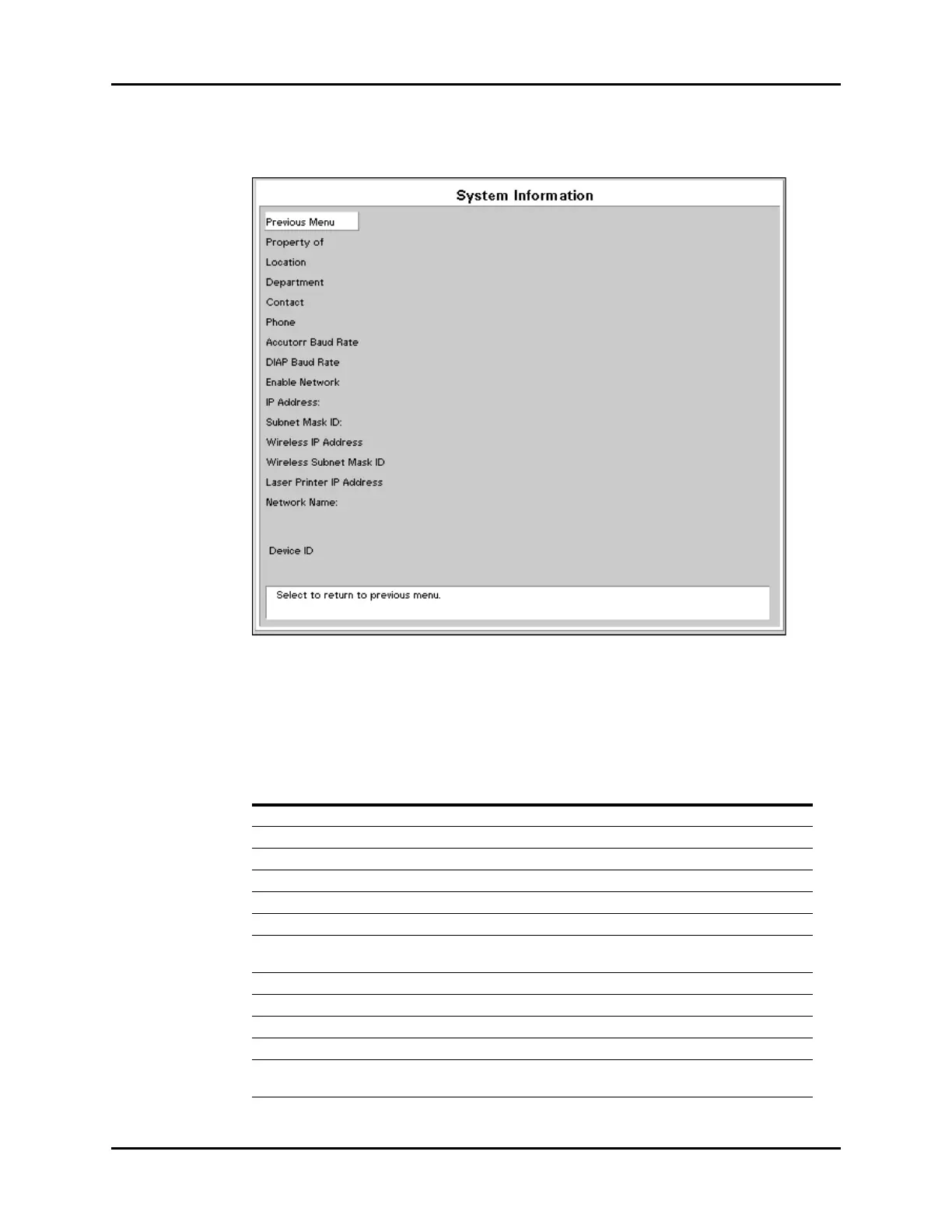 This menu is accessed by selecting System Information from the Installation Menu.