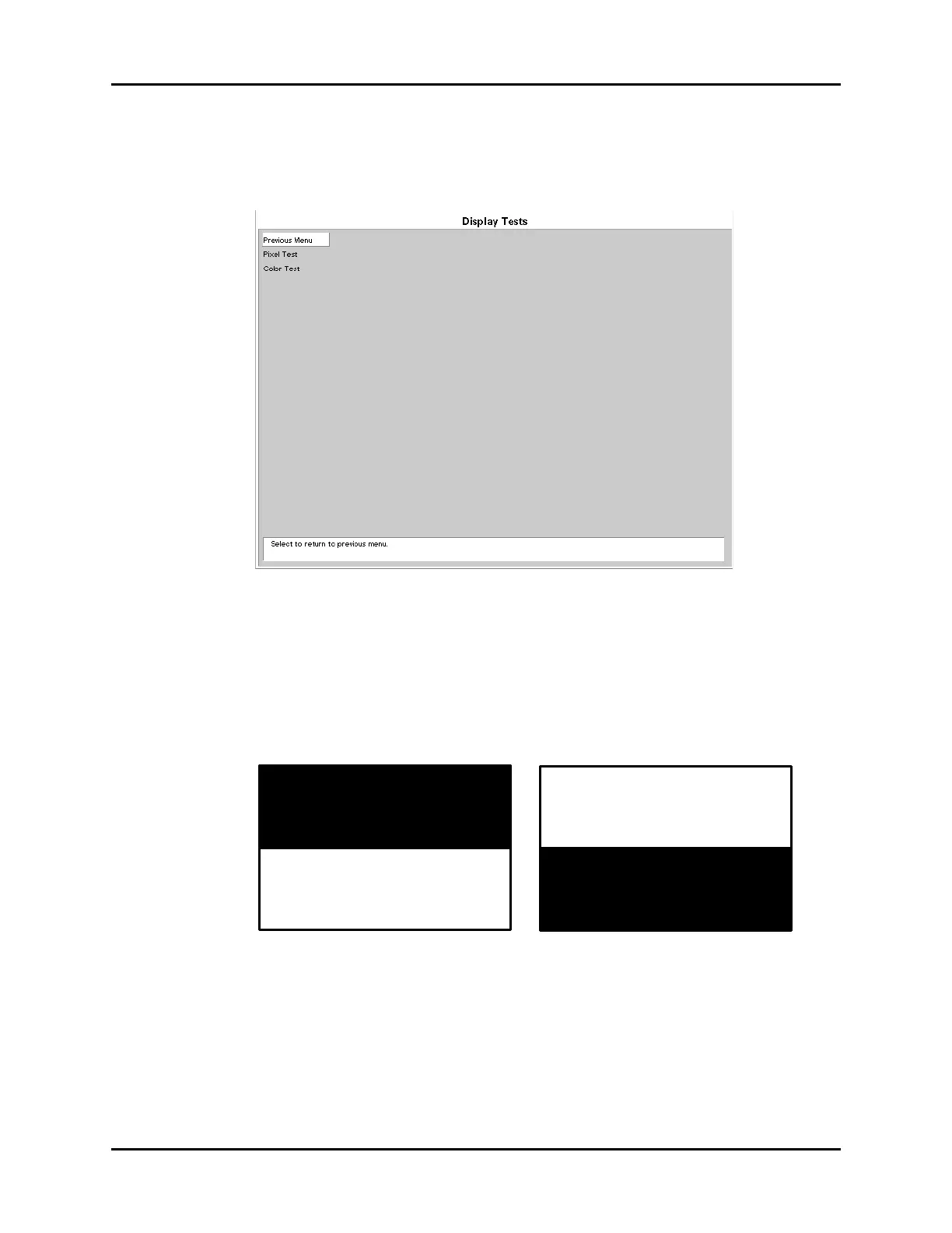 The pixel test will verify the proper operation the display. On screen one half of the screen
