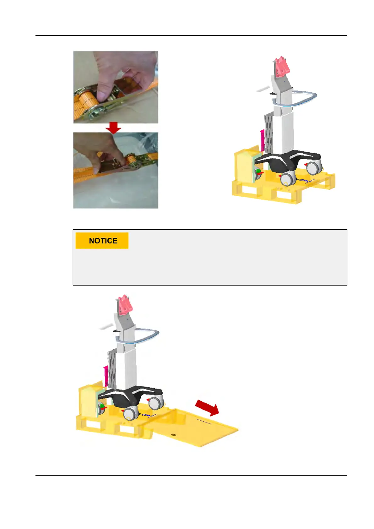 lift switch on the handle when pushing down the machine from the pallet of the slope