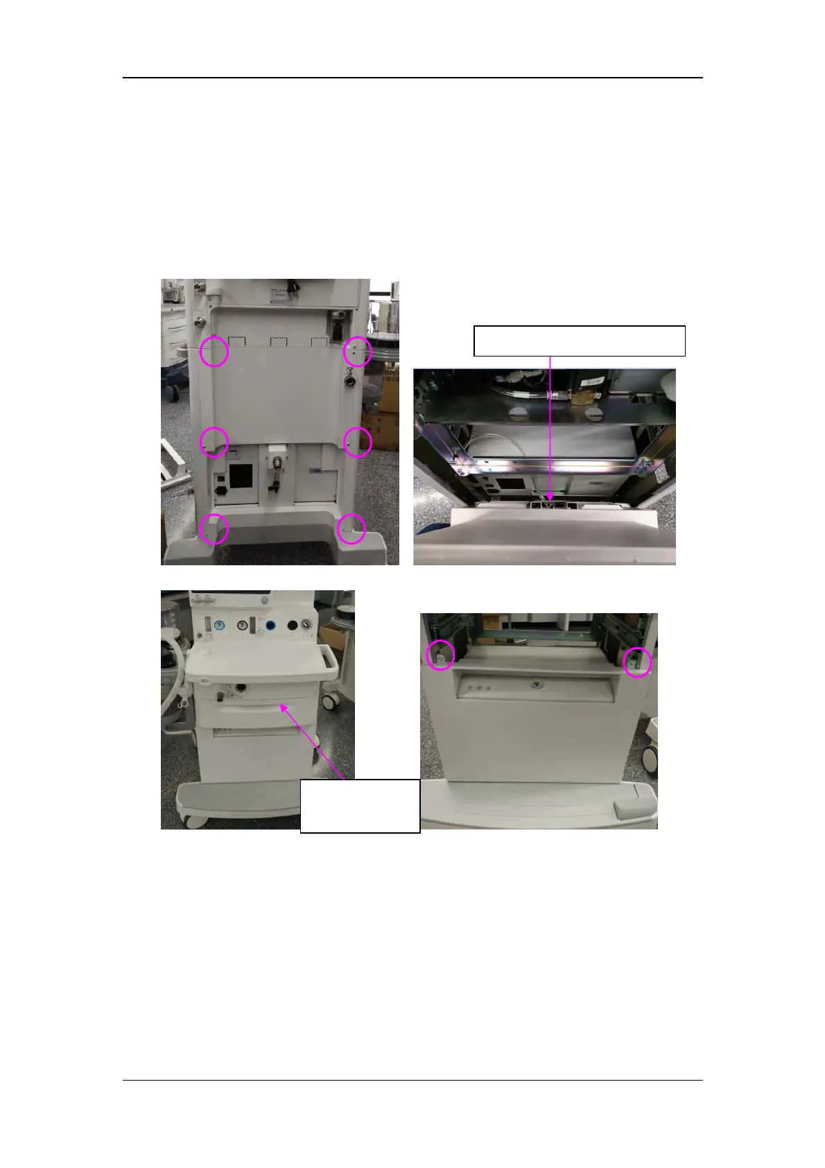 1. Loosen the six screws fixing the rear panel of the cart, remove the gas hose, and take out
