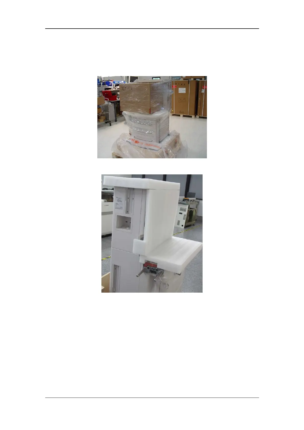 the equipment. Remove and discard the plastic straps. Remove the empty box on the