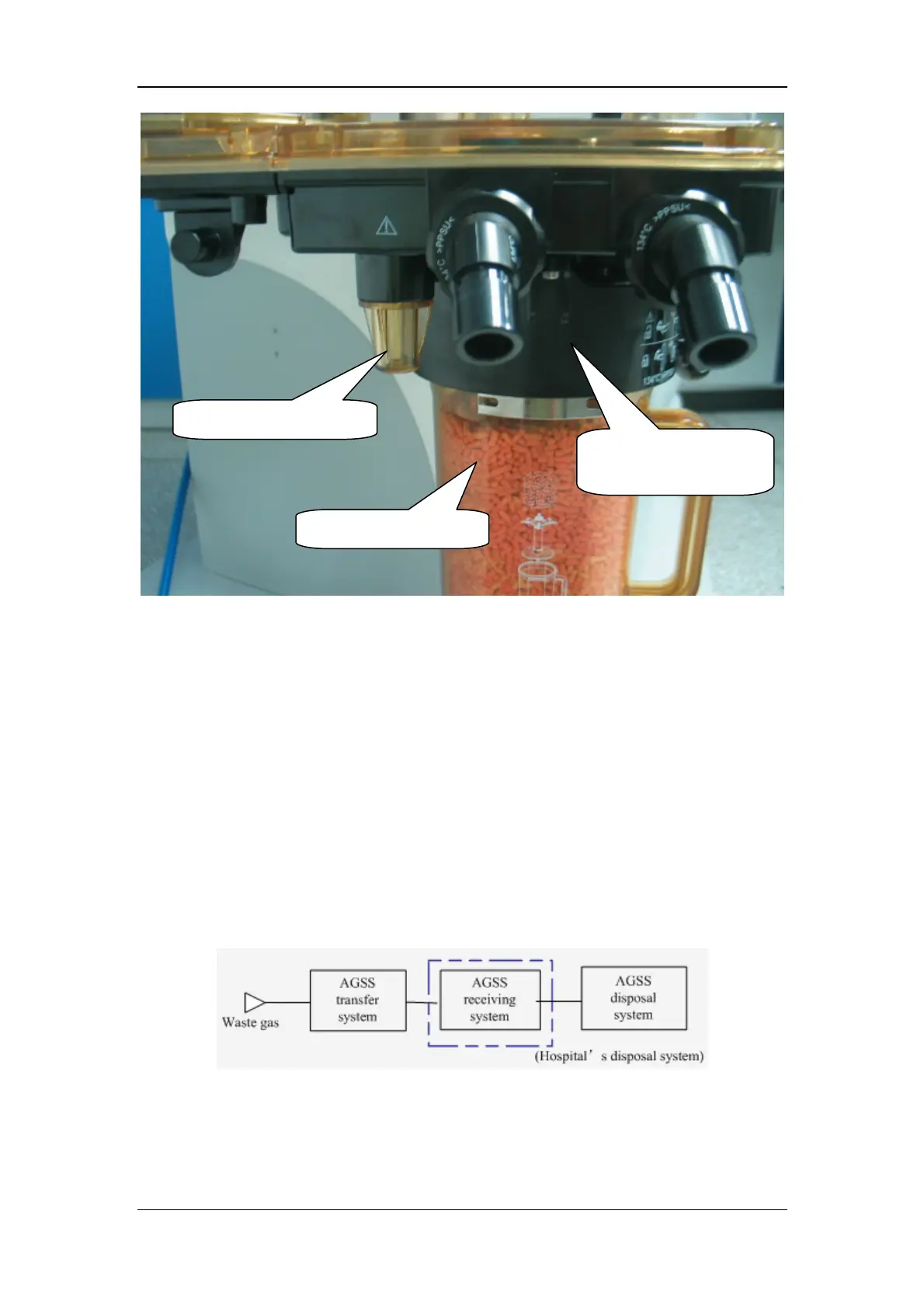 receiving system and AGSS disposal system. Waste gas goes from the exhaust port of the
