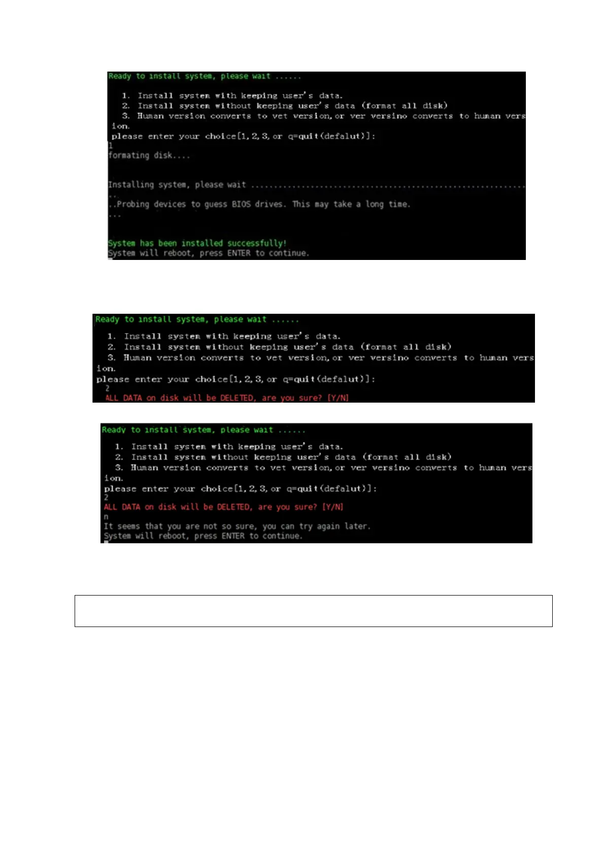 Please select the method “3” to install the operation system only when human version