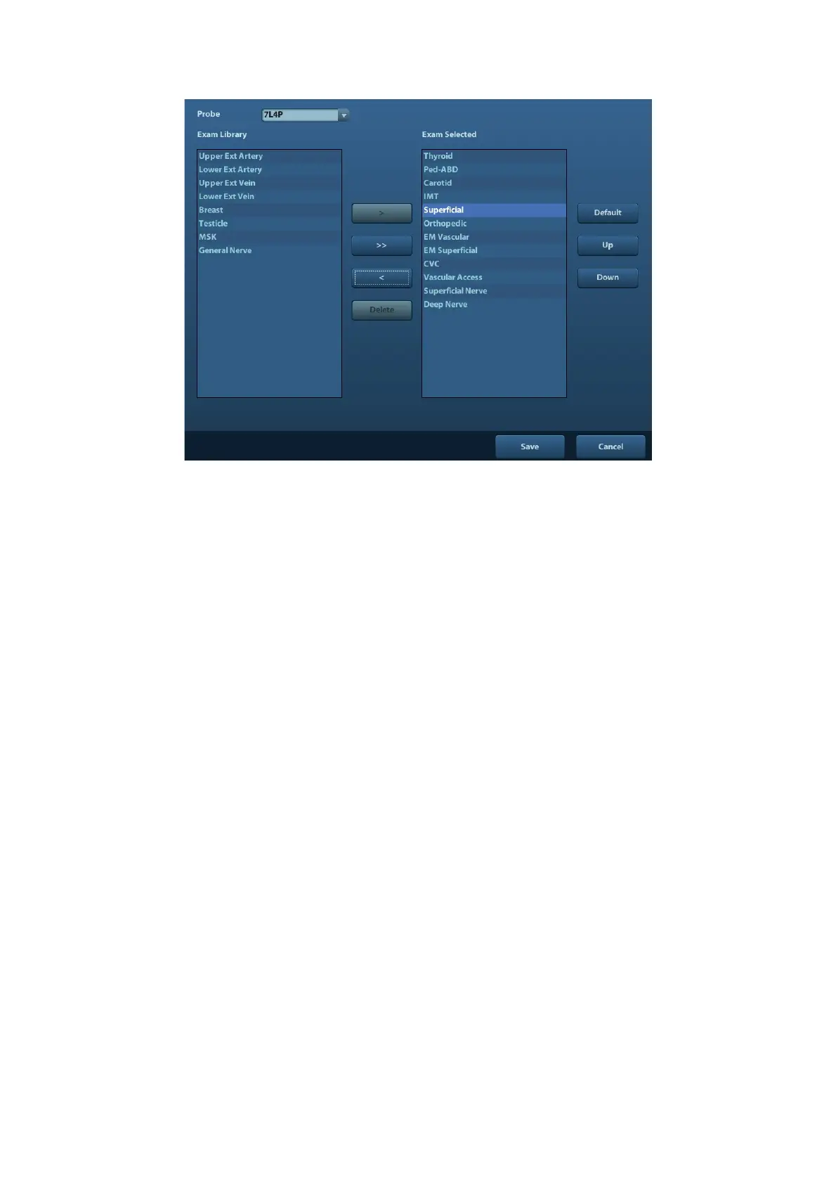 probe. On the left side, you can view all the exam modes supported by the system, i.e.,