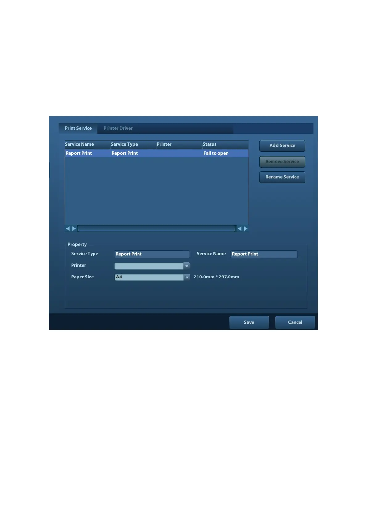 Remove Service: click to delete the selected print service.
