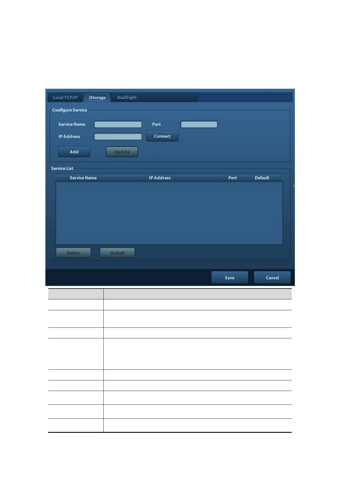 Default Click to set an selected item in the list as the default iStorage server.