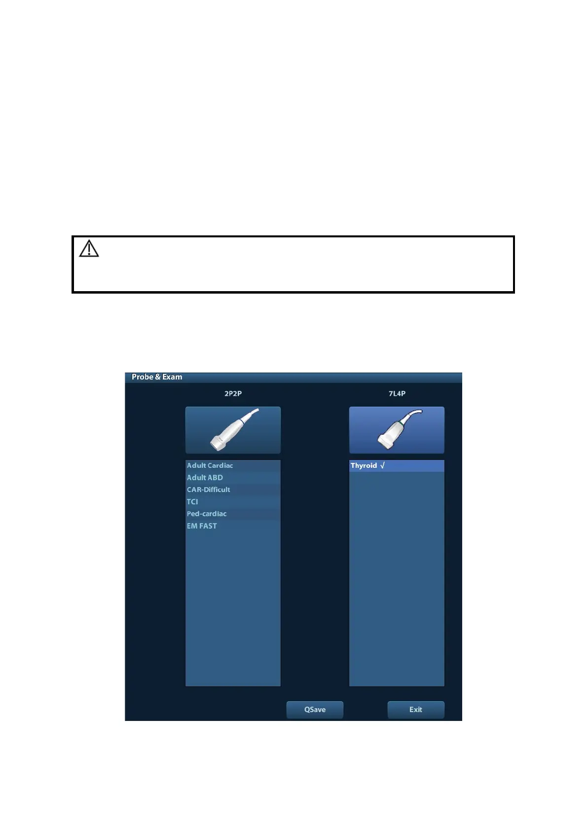 (2) Roll the trackball and press <Set> to select the exam mode, and use the direction