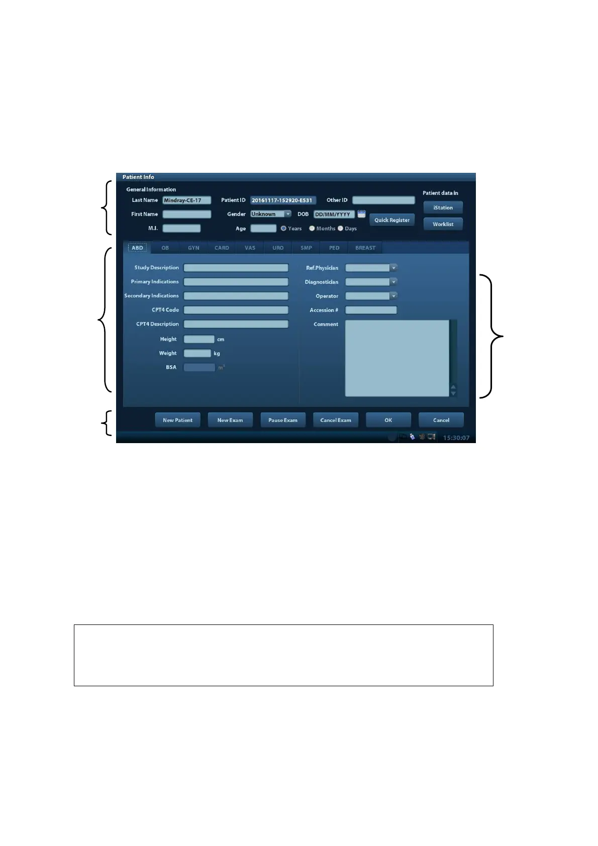 Enter patient name through the keyboard. Characters of A through Z and 0 through 9 and