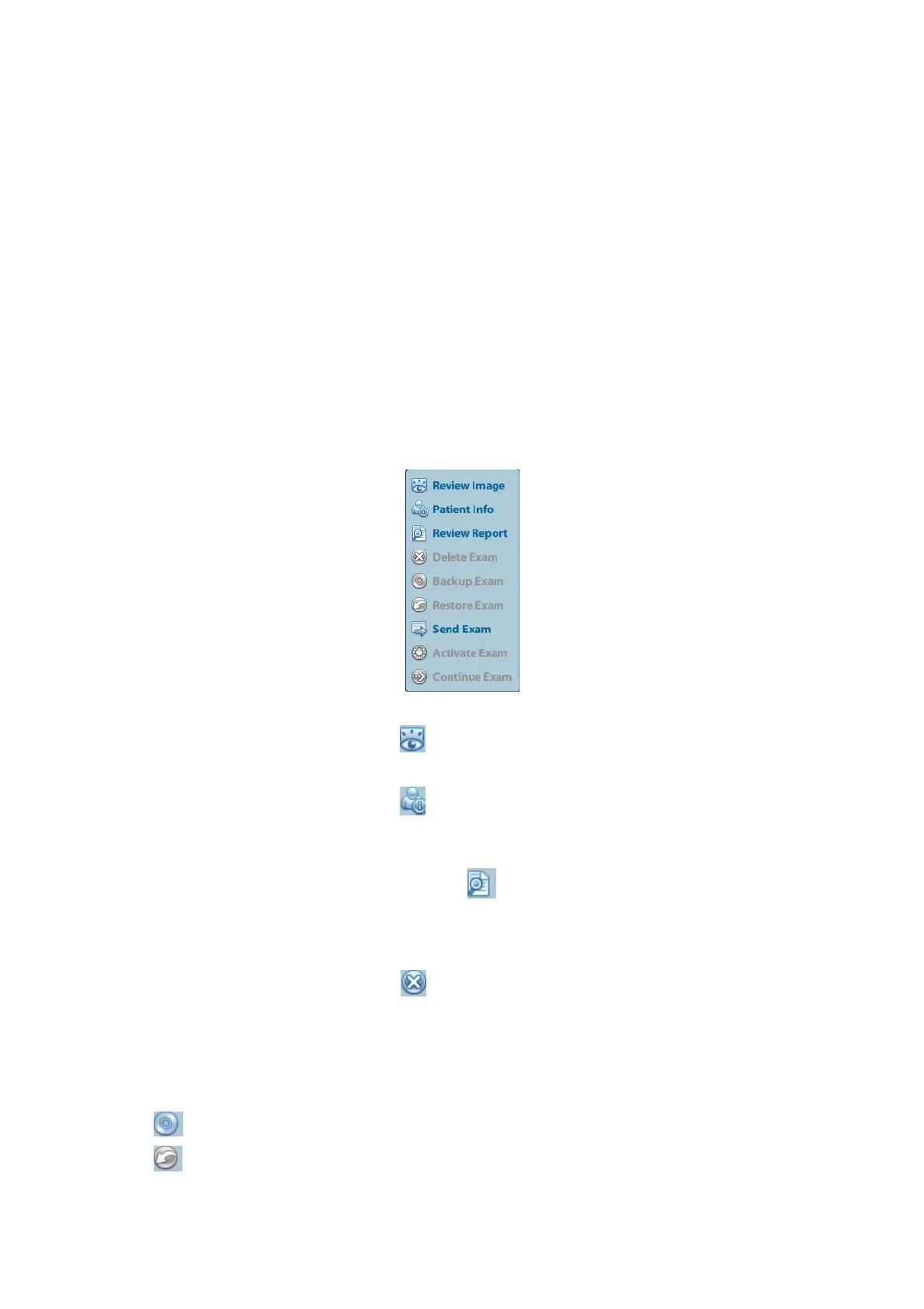 being printed, exported or sent, or delete the current exam.To delete an image, select the