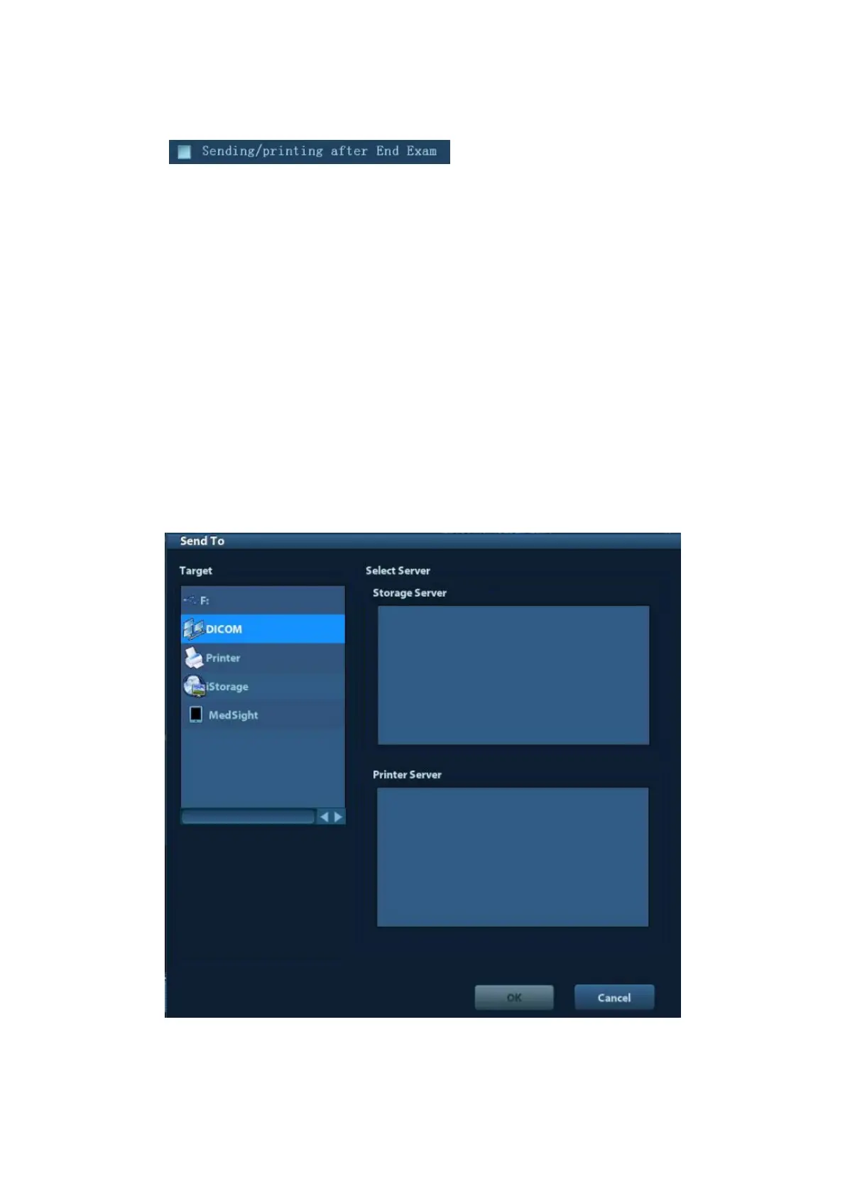 (2) In the Send To dialogue box, select a DICOM print server.