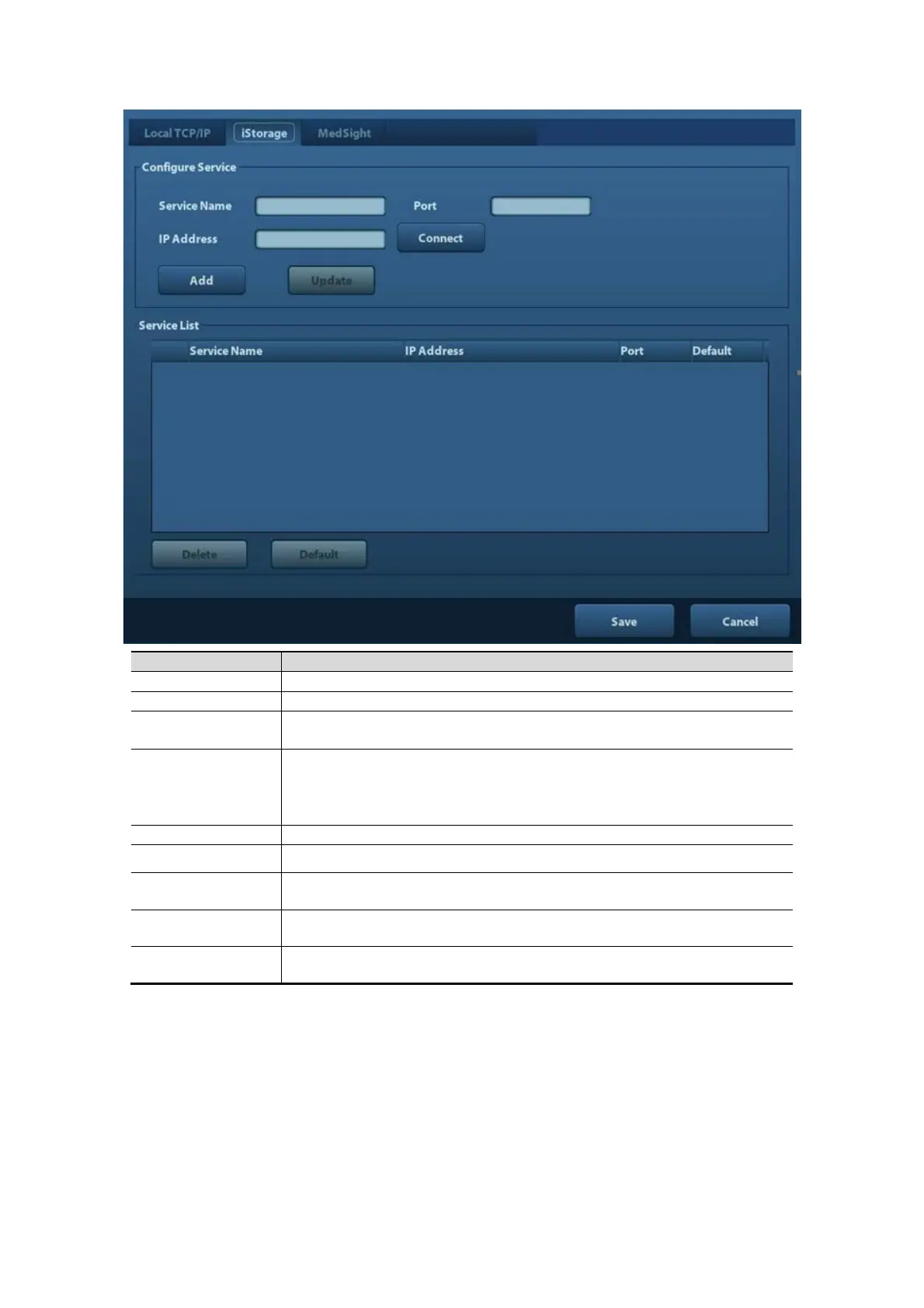 Default Click to set an selected item in the list as the default iStorage server.
