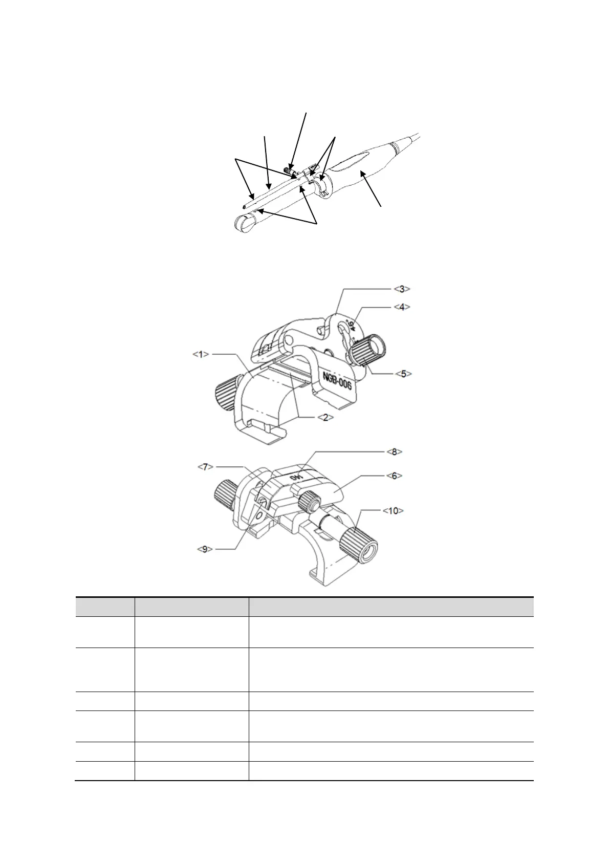 <5> Angle pinch nut Used for fixing the angle block at a chosen angle