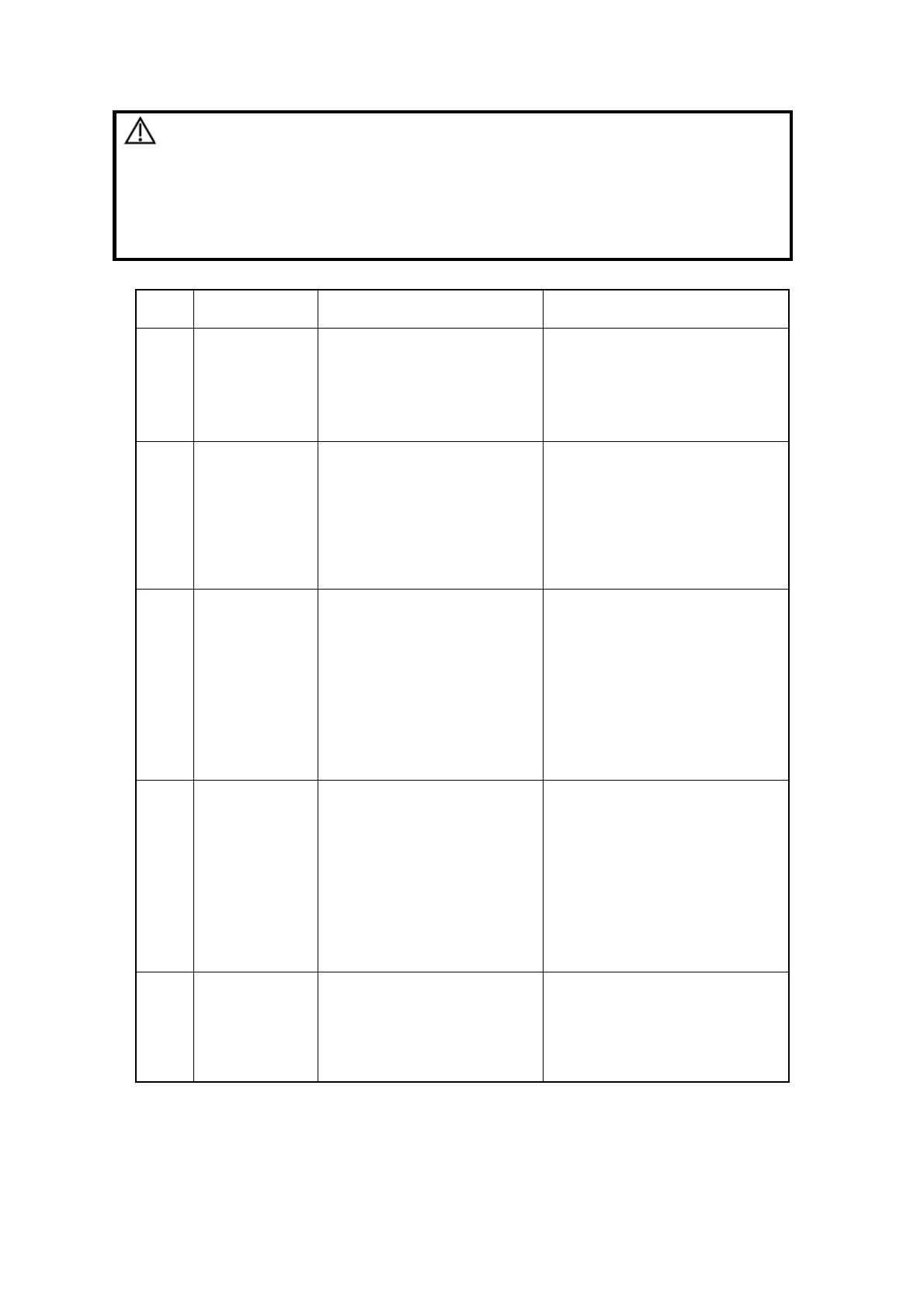 Troubleshooting Table