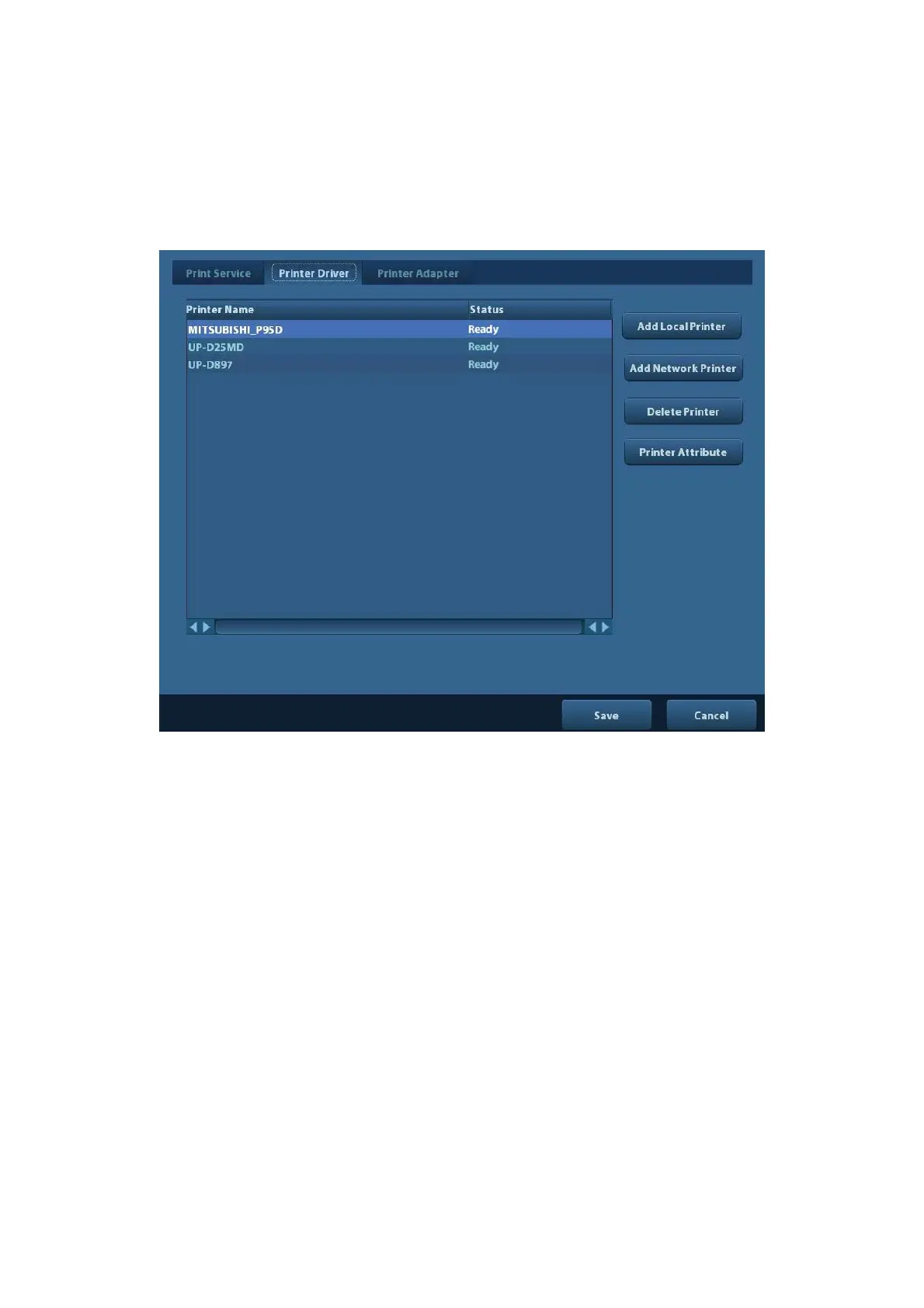 Enter [Setup]-> [Print Preset]->“Printer Driver” page, printers that are installed