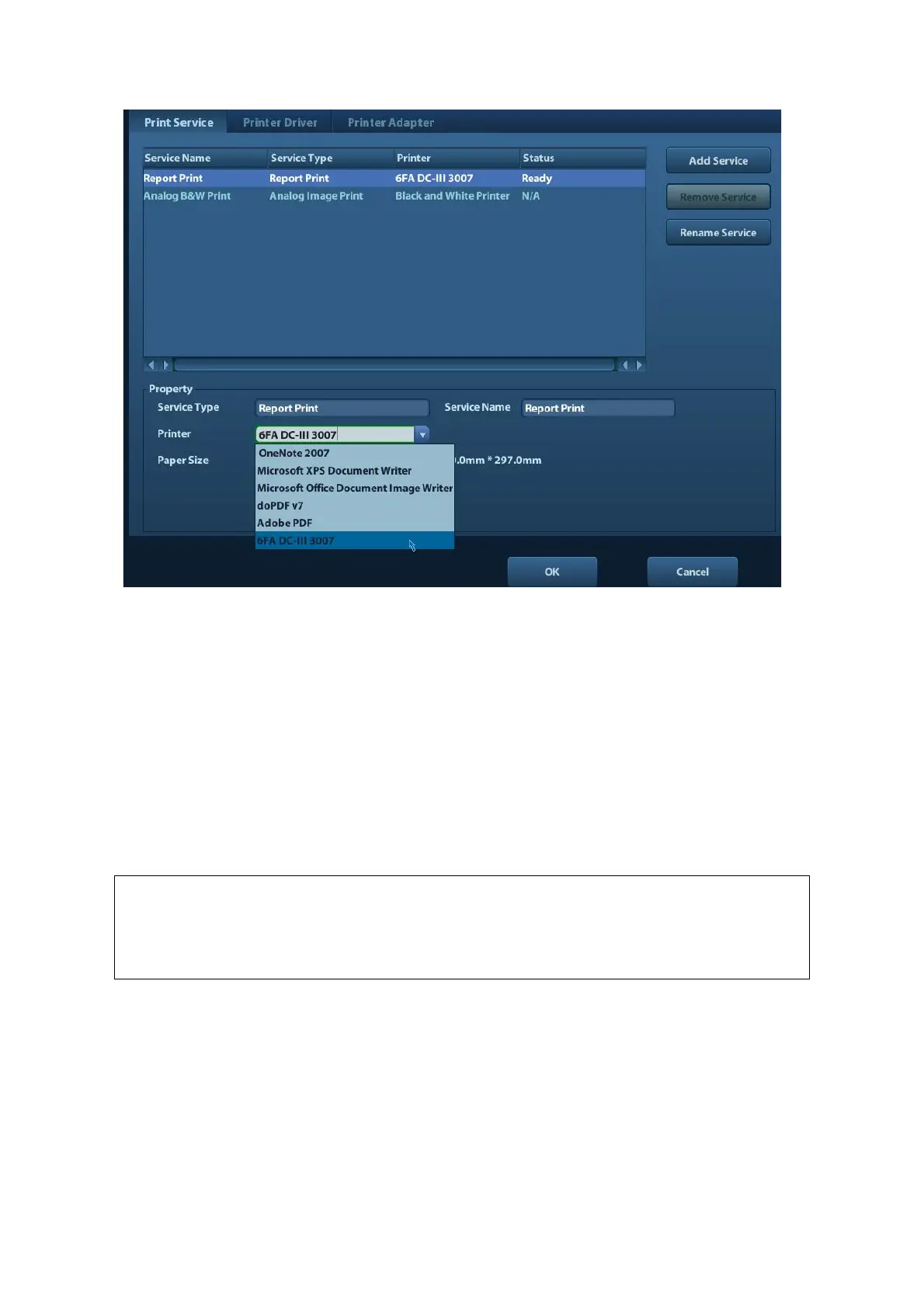 1. Make sure the target network printer and the ultrasound system are both connected into