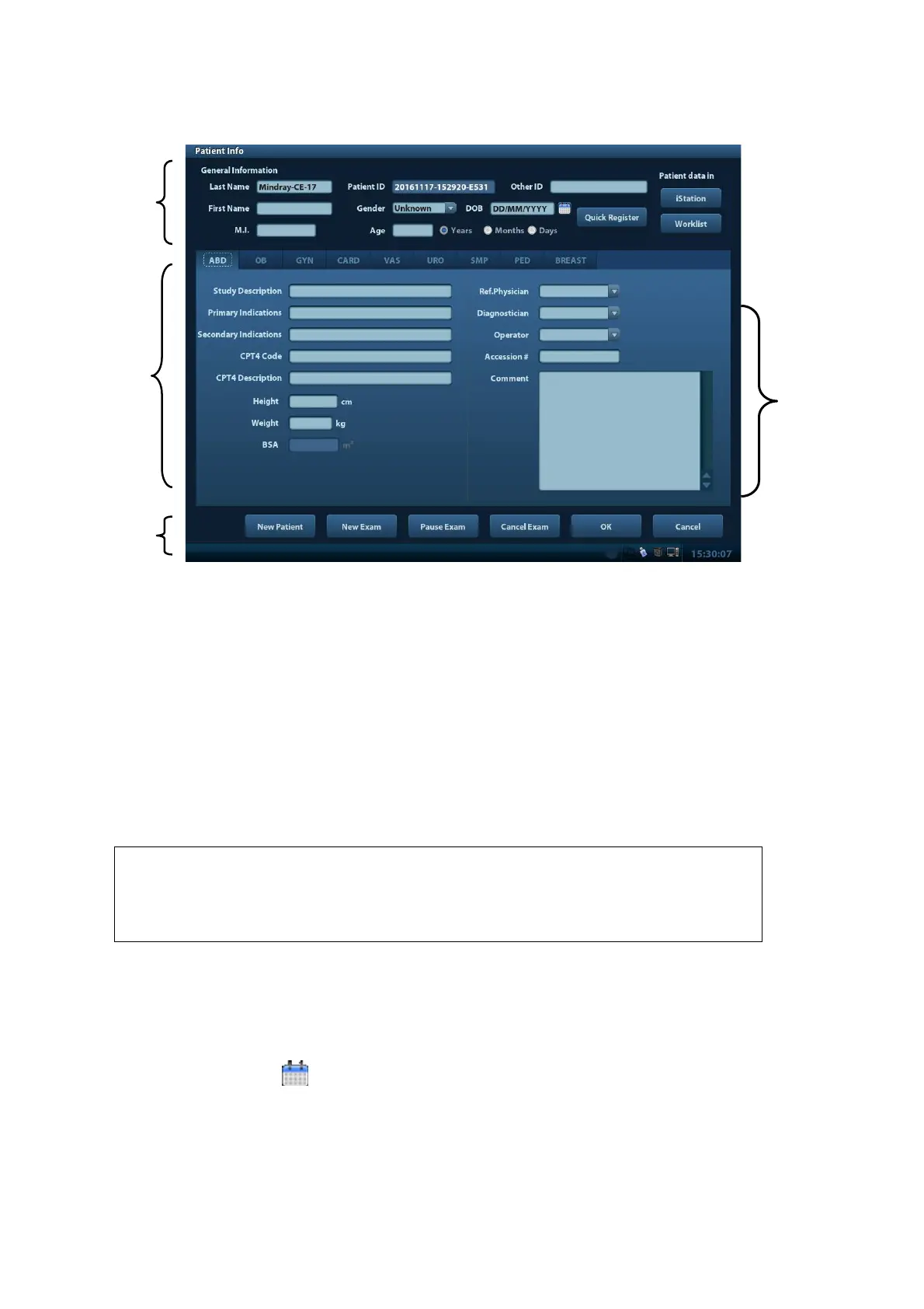 Patient ID is generated automatically by the system after starting a new patient, and can