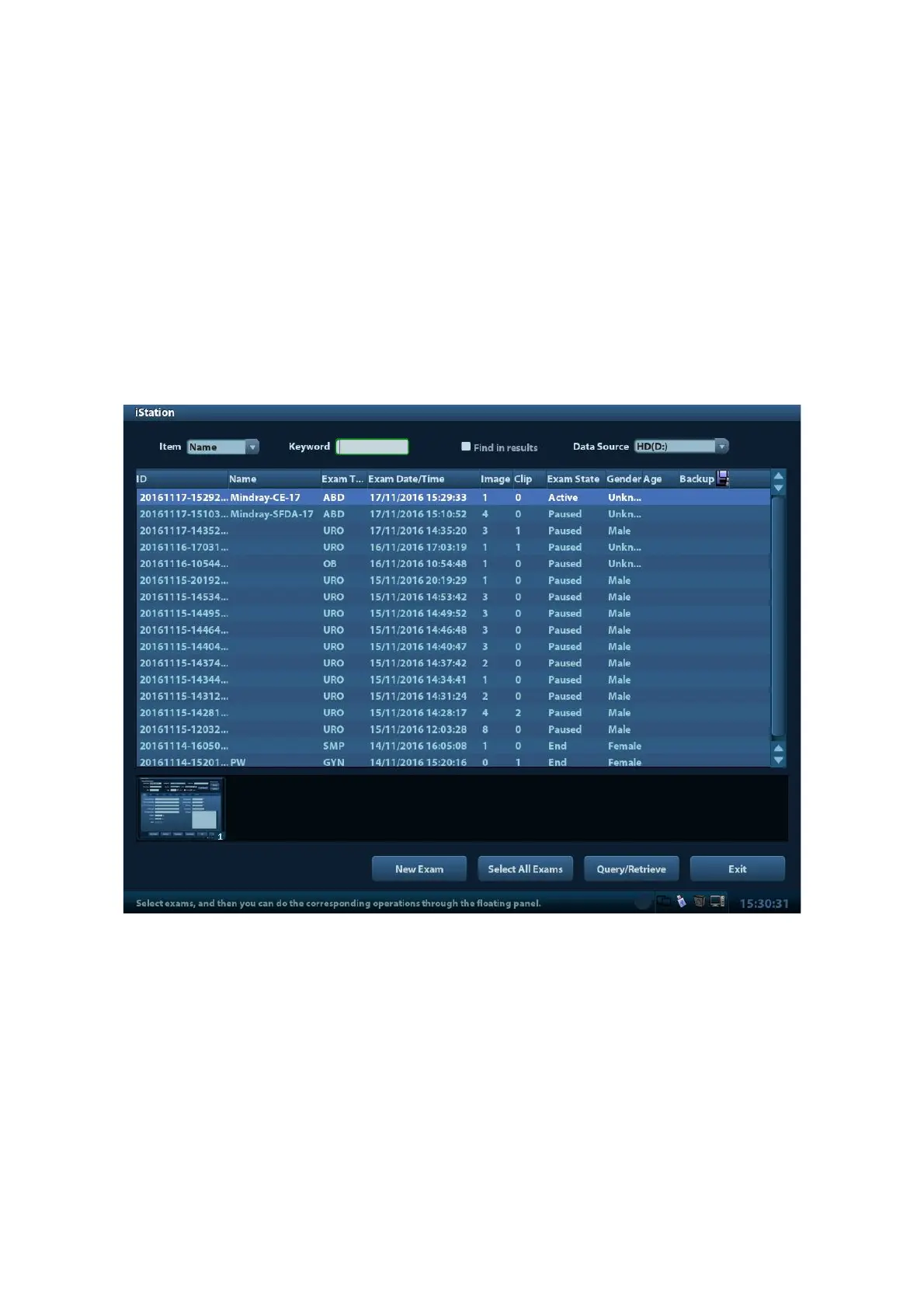 The patient data can be obtained in iStation from the system hardware or USB memory