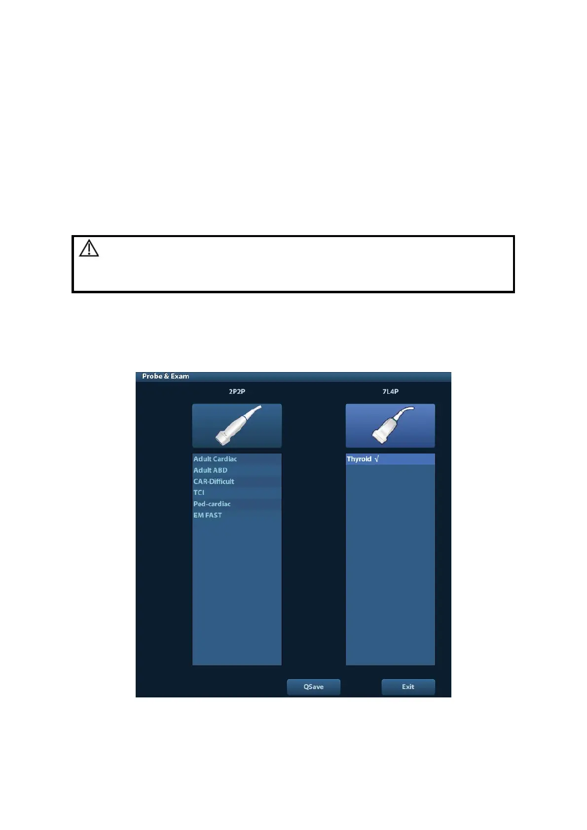 (2) Roll the trackball and press <Set> to select the exam mode, and use the direction