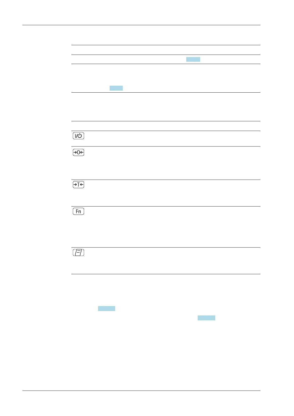 3 Function keys: Zeroing, taring, switching (depending on the Setup menu set-
