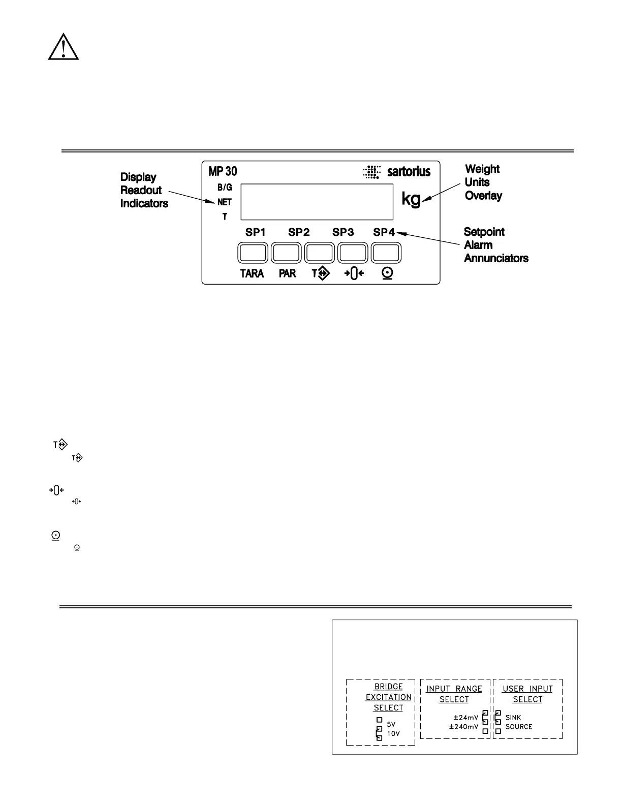 The TARA key selects among the Gross, Net and Tare weight displays.
