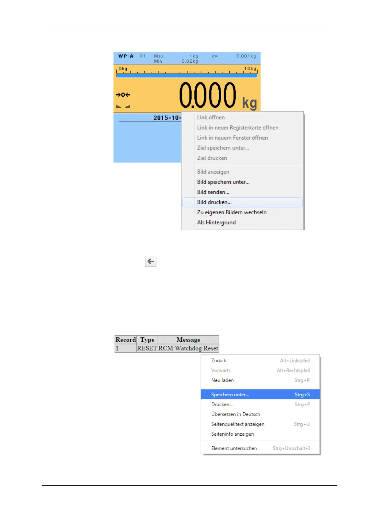 With the [Show error Log] menu item the error log of the device can be displayed, saved