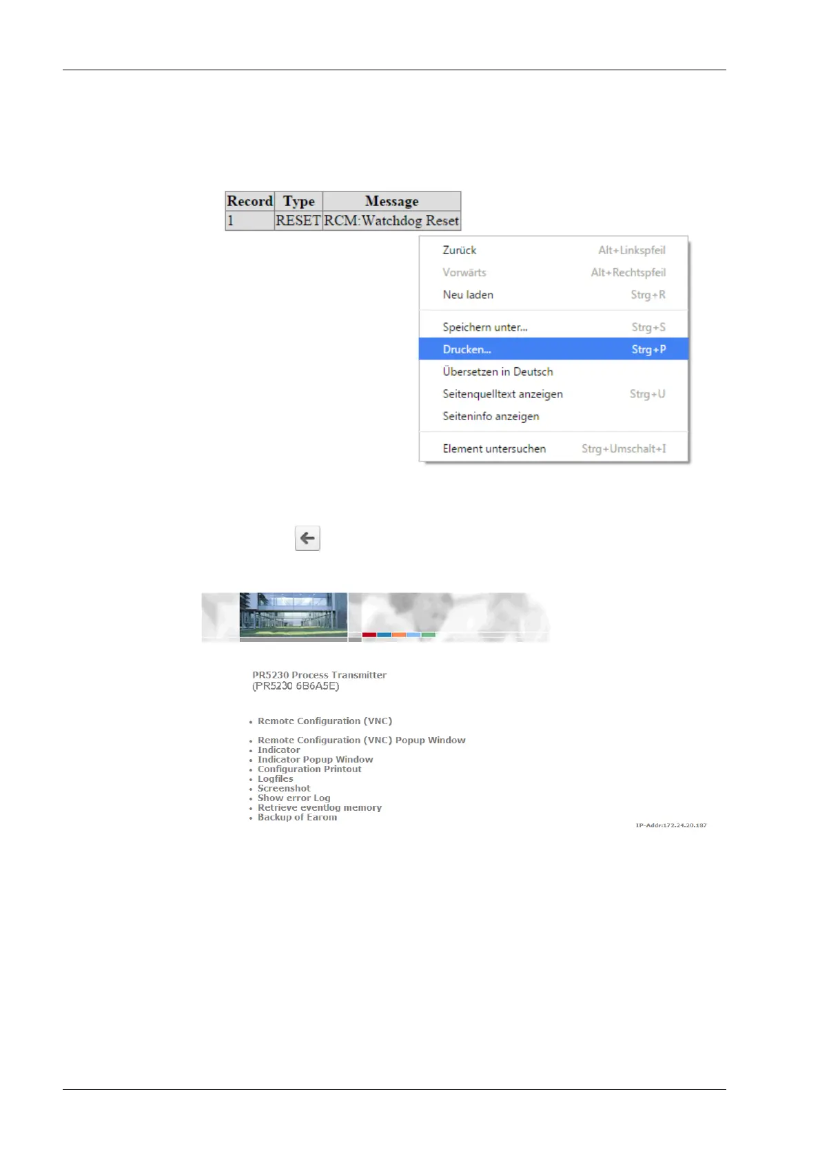 With the [Retrieve eventlog memory] menu item the logged events can be displayed and