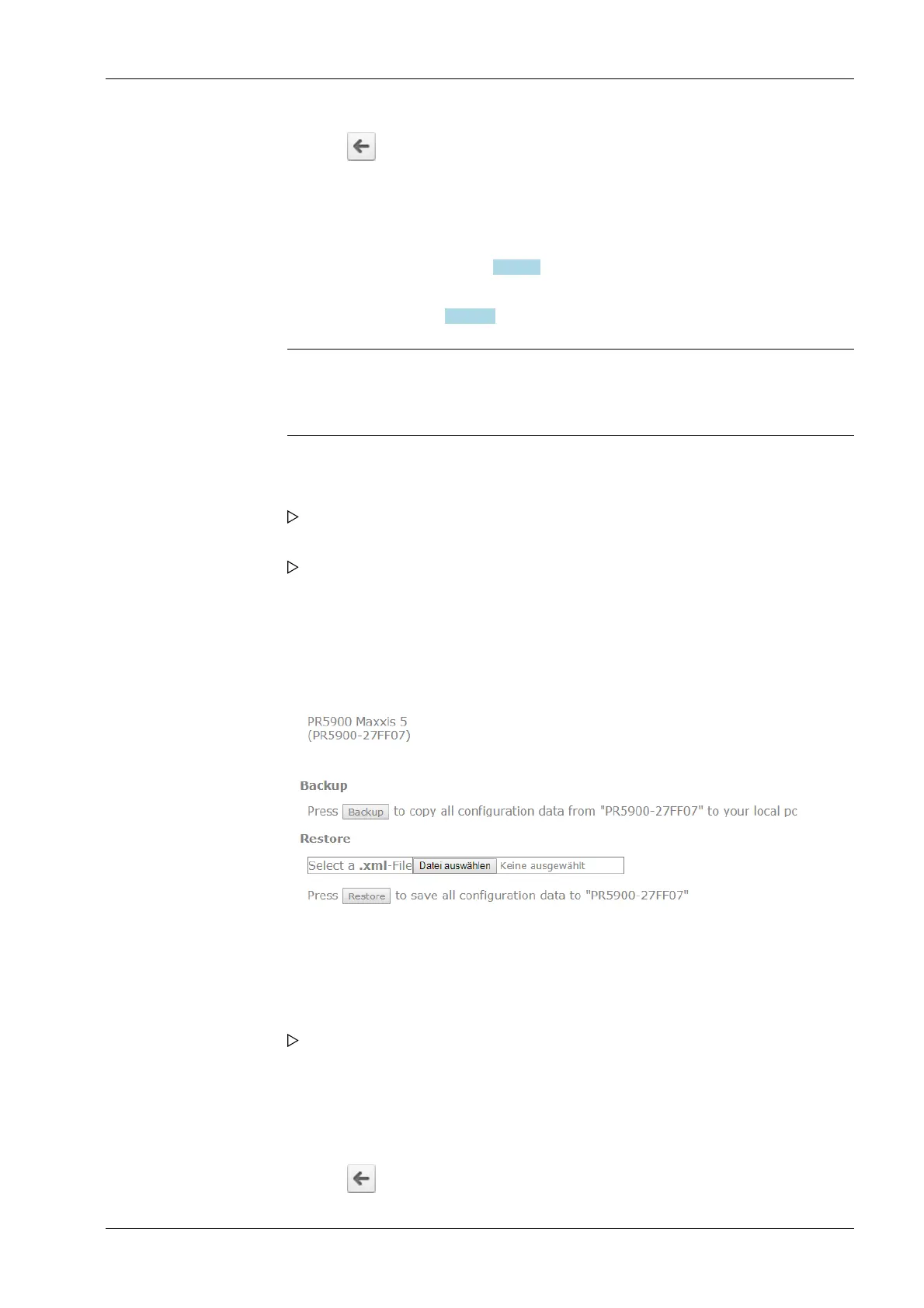 Accessible via the web menu – [Backup and restore setup data] - [Backup].