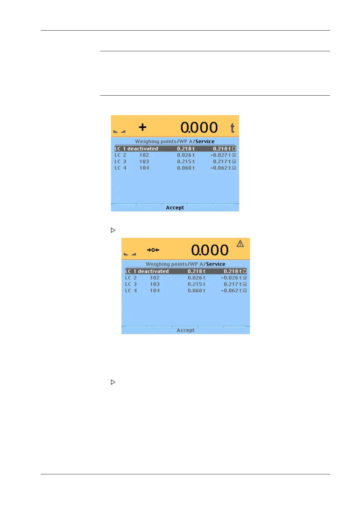 1. Select the faulty load cell and confirm, to deactivate the cell.